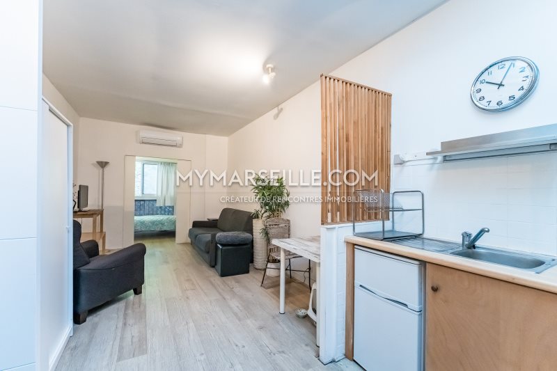 Charmant T2 Meublé – Au Calme En Plein Cœur Du 6ᵉ – Au fond d’une cour au calme, à deux pas du Palais de Justice et des commodités du boulevard Notre-Dame, découvrez ce bel appartement de 32 m² situé au 1er et dernier étage d’un petit immeuble du 6ᵉ arrondissement de Marseille. Cet appartement bien agencé offre une agréable pièce de vie avec son coin nuit distinct, un espace salon convivial (canapé convertible, fauteuil), ainsi qu’une cuisine fonctionnelle entièrement équipée (plaques, hotte, réfrigérateur, four à micro-ondes, rangements…). Une salle de bain avec Wc complète l’ensemble. Le logement dispose d’un Velux électrique qui augmente la lumière naturelle dans la cuisine et d’une climatisation réversible installée en 2024, garantissant confort été comme hiver. Quelques travaux de rafraîchissement (peinture, joints, décoration) permettront de révéler tout le potentiel de ce véritable cocon urbain. Idéalement situé à proximité immédiate des transports, du Vieux Port et du 7ème arrondissement de Marseille, il offre un cadre de vie pratique et agréable. Un bien chaleureux, fonctionnel et prêt à vivre, idéal pour un investissement locatif ou un premier achat.