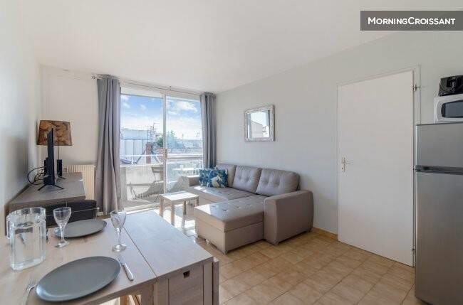 Dans un immeuble à cheval sur Lyon 3 et Villeurbanne, à 10 min à pied de la gare de Part-Dieu, cet appartement de la ville de Villeurbanne est idéal pour accueillir jusqu'à 2 personnes. Situé au 5ème étage d'une résidence calme et sécurisée (avec ascenseur), cet appartement sans vis-à-vis et entièrement baigné de lumière vous offre un espace de vie de 35 m² et se compose de : - un balcon ensoleillé avec vue dégagée, accessible par la chambre et le salon, - un séjour épuré avec canapé-lit confortable, - une chambre lumineuse avec lit queen-size (160 cm), - une salle de bain avec baignoire, - un coin cuisine bien équipé (machine à café, grille-pain, bouilloire, four, micro-ondes, frigo, plaques de cuisson), - aspirateur, lave-linge, sèche-cheveux et matériel de repassage, - Tv et Wi-Fi (avec la fibre), - une place de parking privée. Situé à Villeurbanne, avec un accès rapide à la presqu'île de Lyon, vous aurez un emplacement idéal, proche de l'Université Jean Moulin Lyon 3. Vous pouvez accéder à l'université en 10 min à vélo et au centre ville en 15min. Des frais de gestion d'un montant de 455€ vous seront demandés avant votre entrée dans les lieux.