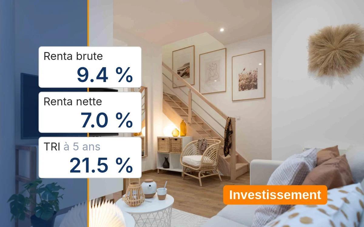 !!! Investissement locatif • vendu loué !!! Type : Maison Surface carrez : 108.85m² Type de location : colocation Type de baux : baux meublés Paiement loyers : À jour Analyse financière (frais de notaire inclus) - Rendement brut : 9.35% - Rendement net : 7.04% - Tri (5 ans) : 21.46% (avec 20% d'apport) ~ Analysé et certifié par des experts de l'immobilier ~ Locataire vérifié ~ Loyer Cc : 4165 €/mois Plus de détails ou faire une offre : consultez le site web de Trackstone (Ref: BR2RDCF6L11-16) --- Trackstone est la première plateforme de vente de biens immobiliers vendus occupés/loués • consultez toutes les opportunités, simulez votre investissement et faites vos offres directement sur le site web de Trackstone