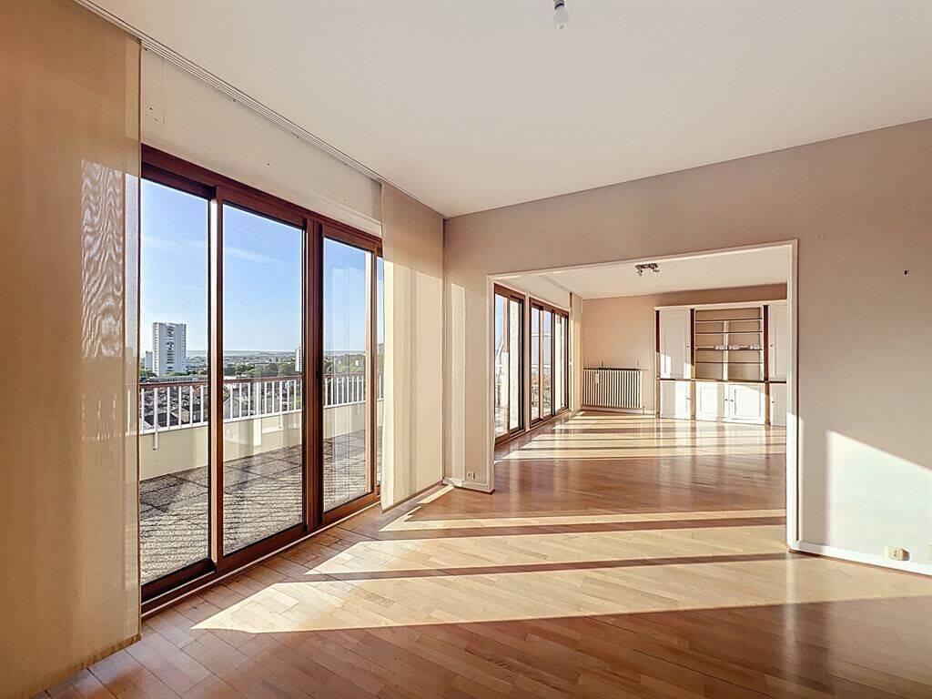 Au Dernier étage d'une résidence avec ascenseur, appartement Terrasse avec vue et bien exposé. Vaste réception lumineuse, 4 chambres, nombreux rangements, Salle de bains, salle de douche, 2 Wc séparés, cuisine entièrement équipée, buanderie/cellier. Double vitrage - volets roulants électriques - stores bannes électriques. Cave. 2 garages dont 1 très grand. Charges de copropriété annuelles comprenant les chauffage, l'eau froide, l'eau chaude.. 5280 euros/an - Copro de 105 lots - Honoraires de vente 4.76 % à la charge de l'acquéreur ( prix de vente hors honoraires 420.000 euros)