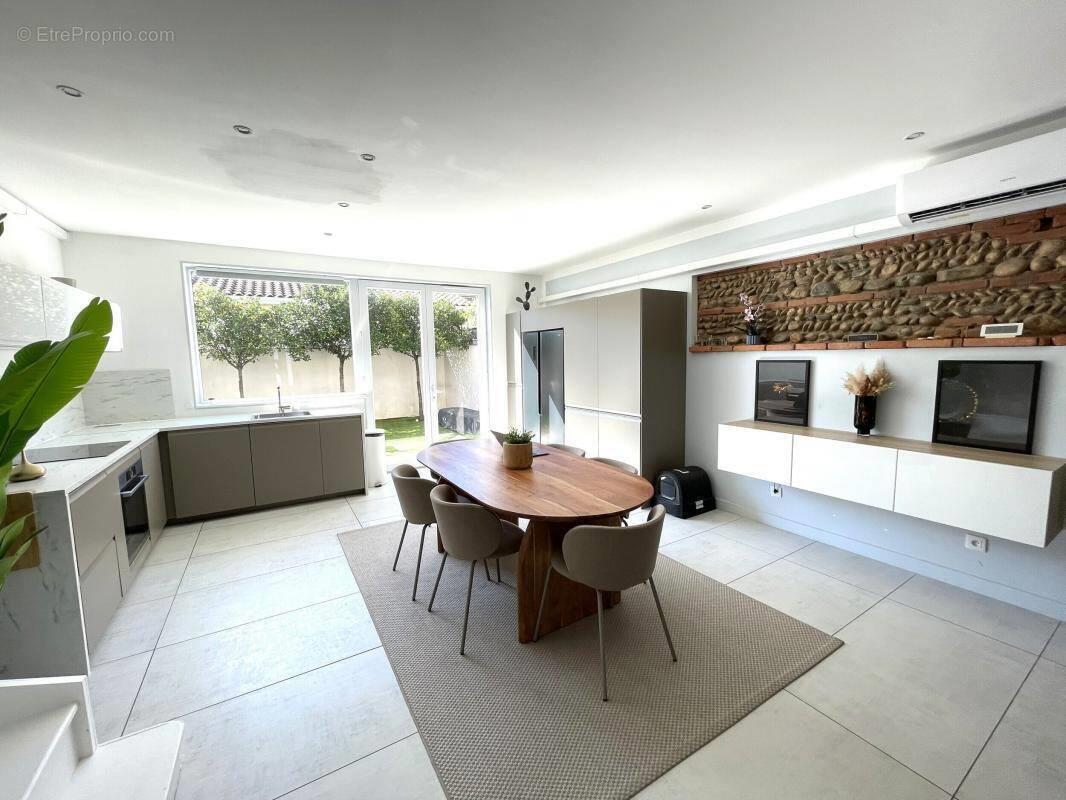 Coup de cœur assuré pour cette villa de 91 m² habitables, entièrement rénovée en 2021, située dans un quartier à proximité immédiate des transports, écoles, commerces et accès périphérique. Nichée dans une ancienne toulousaine, cette maison au style loft dispose d'une vaste pièce de vie de 40 m², baignée de lumière, où une cuisine entièrement équipée s'intègre harmonieusement. Profitez d'une terrasse de 30 m², à l'abri des regards, idéale pour des moments de détente. Ce niveau est complété par un Wc et un espace de rangement pratique. À l'étage, vous trouverez 3 chambres avec de véritables parquets, dont une spacieuse chambre parentale . Une salle de bain moderne, équipée d'une douche et d'une baignoire, ainsi qu'un second Wc, viennent parfaire cet espace. Ne manquez pas cette opportunité de vivre dans un cadre alliant confort et modernité !