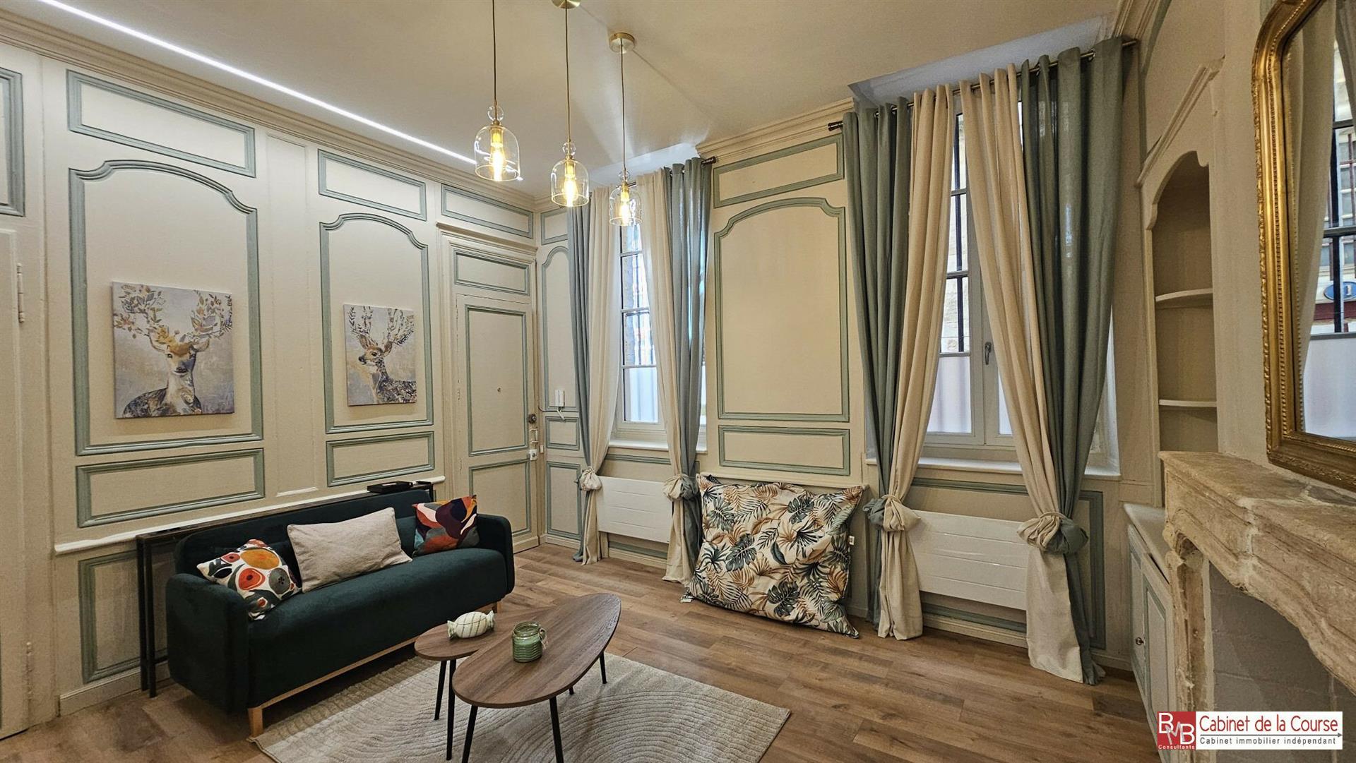 Le Cabinet de la Course vous propose, dans un immeuble en pierre du Xix? siècle situé rue Hugla, dans le quartier Saint-Michel, un appartement T1 au rez de chaussée, d'une surface habitable de 30m². Entièrement rénové et meublé, ce bien a su garder intact le charme de l'ancien et offre une vaste pièce de vie de 22 m² avec cuisine ouverte équipée (plaque vitrocéramique, réfrigérateur, hotte aspirante, four micro onde et air fryer), ainsi qu'une salle d'eau avec WC. Une mezzanine de couchage confortable vient compléter l'ensemble. Ce bien dispose aussi de rangements fort pratique. L'appartement est situé à 5 minutes à pied de toutes les commodités. Chauffage et eau chaude électriques – Fenêtres en double vitrage Appartement disponible immédiatement Loyer mensuel : 700 € + 70 € de provision sur charges (comprenant l'eau froide, internet par la vibre optique et le fonctionnement des parties communes) Dépôt de garantie : 1 400€ Honoraires d'agence : 390 € TTC Pour toute information complémentaire ou pour une visite, contactez-nous . Cabinet De La Course27, rue de la Course33000 BORDEAUXTél. : Honoraires de 390 € Ttc à la charge du locataire. Zone soumise à encadrement des loyers. Loyer de référence majoré (loyer de base à ne pas dépasser) 720 €/mois. Loyer de base 700 €/mois. Provision sur charges 70 €/mois, régularisation annuelle. Dépôt de garantie 1 144 €. Classe énergie D, Classe climat B Montant estimé des dépenses annuelles d'énergie pour un usage standard : entre 580.00 € et 820.00 € sur les années 2021, 2022 et 2023 (abonnements compris). Les informations sur les risques auxquels ce bien est exposé sont disponibles sur le site Géorisques : .