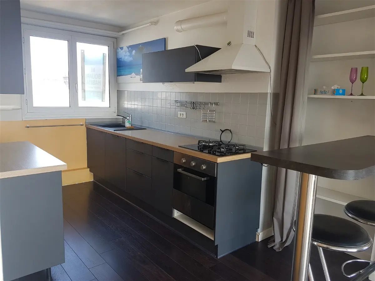 A deux pas du métro et d'une station VLille, idéalement situé entre le bois de Lille et Euratechnologies, grand type 3 traversant offrant une belle luminosité et une vue dégagée comprenant une entrée, vaste séjour avec belle cuisine équipée semi-ouverte, 2 cha...