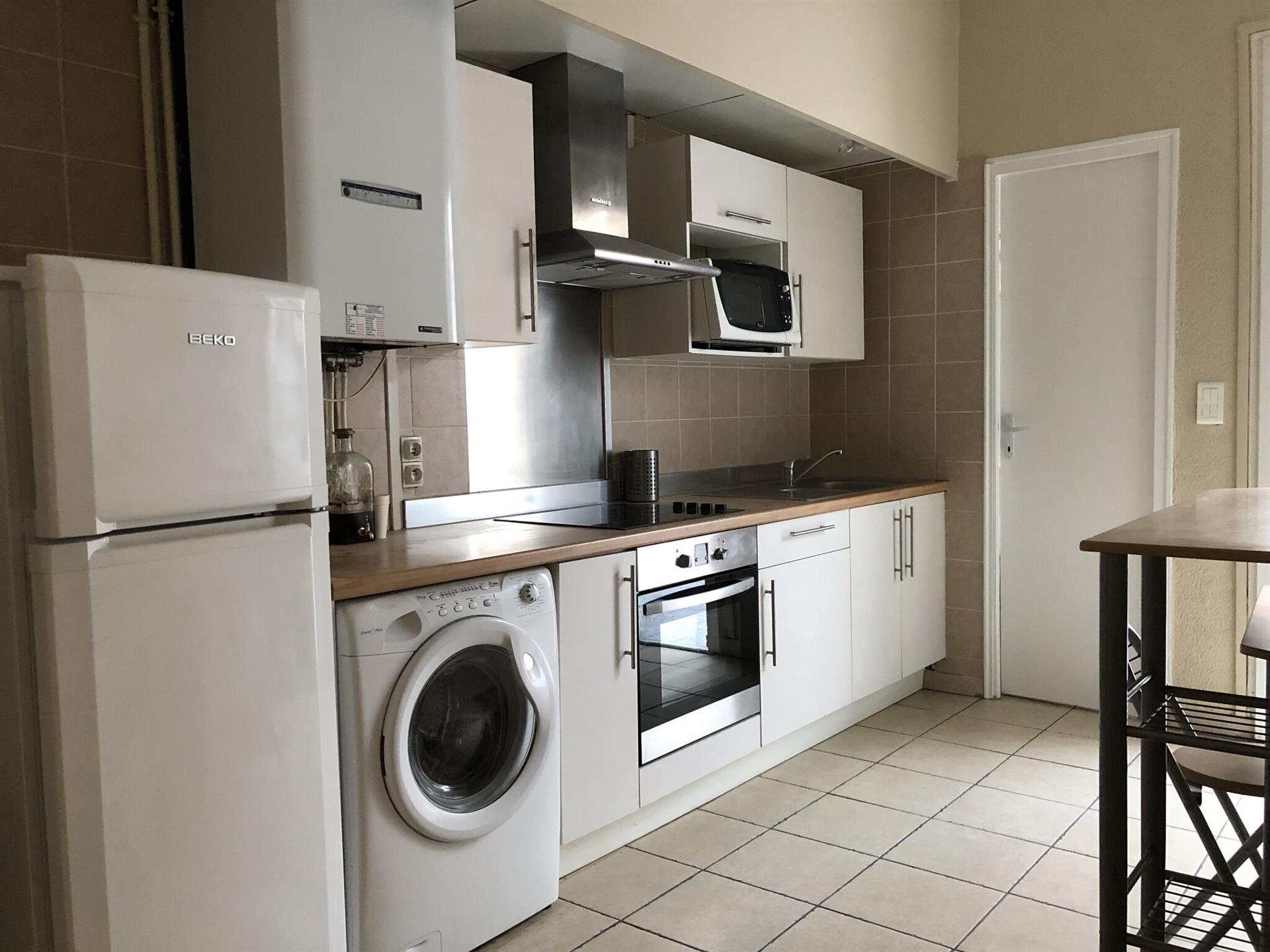 Cette échoppe se compose d'une entrée sur couloir, d'un séjour, de deux chambres, d'une cuisine meublée, d'une salle de bains et d'un Wc séparé. Elle est agrémentée d'un patio qui sépare les pièces principales de l'une des chambres. La maison possède également une cave, et le chauffage est au gaz central. Proche du Sacré-Coeur, vous trouverez à 15 minutes à pied la Barrière de Bègles et la gare St-Jean avec la ligne de tram C. Disponible Le 16 OCTOBRE Merci de bien vouloir nous adresser par mail un dossier de candidature - Fiche à compléter et liste à télécharger sur le site internet du Cabinet Daniel Martin