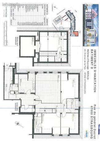 Nous vous proposons à la location un logement T5 en duplex de 148.53m2 situé Rue du Général Ducrot à Strasbourg. Il se compose d'une entrée avec Wc séparé, 1 cuisine séparée de 12m2, un séjour de 32m2, une Sdb, une salle d'eau, de nombreux rangements, 3 chambres ...