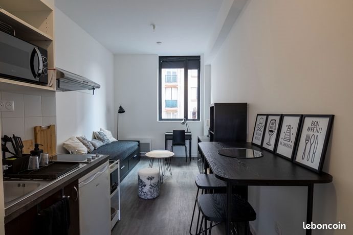 Studio 1 pièce 20 m² Studio meublé- campus Saint-Michel 31400 Toulouse Dans une résidence étudiante récente (2021) sécurisée avec gardien, équipée d'espace de co-working, d'une laverie et d'un espace restauration commune, venez vite découvrir notre appartement meublé. L'appartement est équipé d'une cuisine avec rangement, plaque, hotte et frigo, d'une salle d'eau avec Wc et d''une belle pièce de vie. Meublé avec goût et esprit pratique, en plus du confort de l'appartement vous aurez accès aux universités en moins de 10 minutes grâce au métro (200 mètres à pied) ou au tram (500 mètres à pied) ainsi qu'a la vie du quartier au pied de la résidence : restaurants, commerces divers... Résidence située 41 rue Achille-Viadieu 31400 Toulouse. Honoraires de visites, constitution de dossiers, rédaction de bail et état des lieux de 260Eur Ttc Disponible de suite Surface : 20 m² Modalité de récupération des charges locatives : Prévisionnelles mensuelles avec régularisation annuelle Date de réalisation du diagnostic énergétique : Consommation énergie primaire : 194 kWh/m²/an Consommation énergie finale : 1484 kWh/m²/an Montant estimé des dépenses annuelles d'énergie pour un usage standard : entre 300 € et 600 € par an. Prix moyens des énergies indexés sur l'année 2021 (abonnements compris).Demander plus d'informations