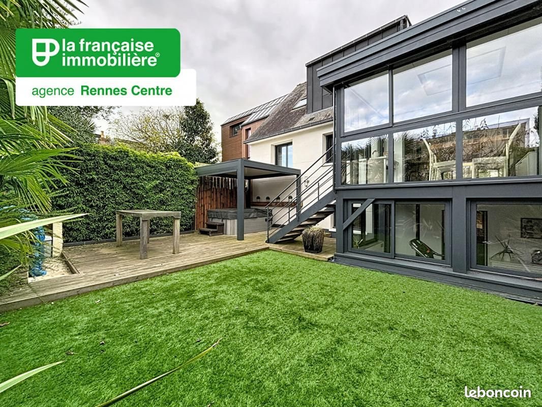 Agence La Française Immobilière Rennes Centre ! Au coeur du quartier Anatole France, dans une rue calme et à deux pas des commerces, du métro ligne A et du Chu Pontchaillou, venez découvrir cette belle maison de 120,27 m² Carrez (128,83 m² au sol), offrant confort, luminosité et de belles prestations. Au premier étage, vous profiterez d'un salon avec cheminée ouvrant sur un balcon, d'une salle à manger donnant directement accès au jardin situé en contrebas, ainsi que d'une cuisine Arthur Bonnet aménagée et équipée, dotée d'un agréable coin repas. Une suite parentale complète cet étage, avec chambre, salle d'eau et Wc. A l'étage supérieur, une mezzanine pouvant servir de bureau distribue deux chambres avec placards, une salle de bains et un Wc séparé. Le sous-sol propose de beaux espaces fonctionnels : un garage avec porte électrique, une cuisine d'été, une buanderie, une cave à vin, ainsi qu'une salle de sport pouvant faire office de bureau, salle de jeux ou pièce polyvalente, avec un accès direct au jardin. A l'extérieur, vous apprécierez un jardin soigneusement aménagé, comprenant une terrasse, une cuisine d'été ainsi qu'un jacuzzi, idéal pour profiter des beaux jours. Cette maison lumineuse, bien agencée et offrant des prestations de qualité n'attend plus que vous. Les informations sur les risques auxquels ce bien est exposé sont disponibles sur le site Géorisques :