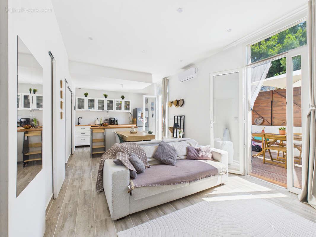 Exclusivité Majesthis - T3 56m2 - Terrasse - Jardinet - Toulon Ouest Dans un secteur résidentiel calme et très verduré, à proximité des commerces, écoles et transports, ce T3 de 56 m2 entièrement rénové en 2024 est un véritable coup de cœur. Aucun travaux n’est à prévoir, vous pouvez poser vos valises immédiatement. Situé au 1er et dernier étage d’une ancienne bastide divisée en quelques logements, ce bien offre l’âme d’une maison avec la praticité d’un appartement. L’Appartement est traversant Est/Ouest, avec une grande pièce de vie de 27 m2combinant séjour et cuisine américaine équipée neuve, lumineuse et conviviale. Cette pièce s’ouvre sur une terrasse de 22 m2, parfaite pour vos repas en plein air, vos moments de détente ou pour recevoir vos proches. Depuis la terrasse, accès direct à un jardinet privatif de 19 m2, idéal pour un coin verdure, un coin piscine hors sol / Spa ou un espace enfants. L’appartement comprend deux chambres, dont une suite parentale avec salle de bains et baignoire, et bénéficiant toutes deux d’une vue imprenable sur le Faron. Le stationnement est facile dans l’impasse, et le confort moderne est assuré grâce à la climatisation réversible, la fibre optique et des charges de copropriété très faibles. Un bien unique qui combine rénovation récente, appartement traversant, extérieurs privatifs, environnement verdoyant, calme absolu et emplacement privilégié. Un coup de cœur assuré. Contactez vite l’Agence Majesthis pour organiser une visite rapide.