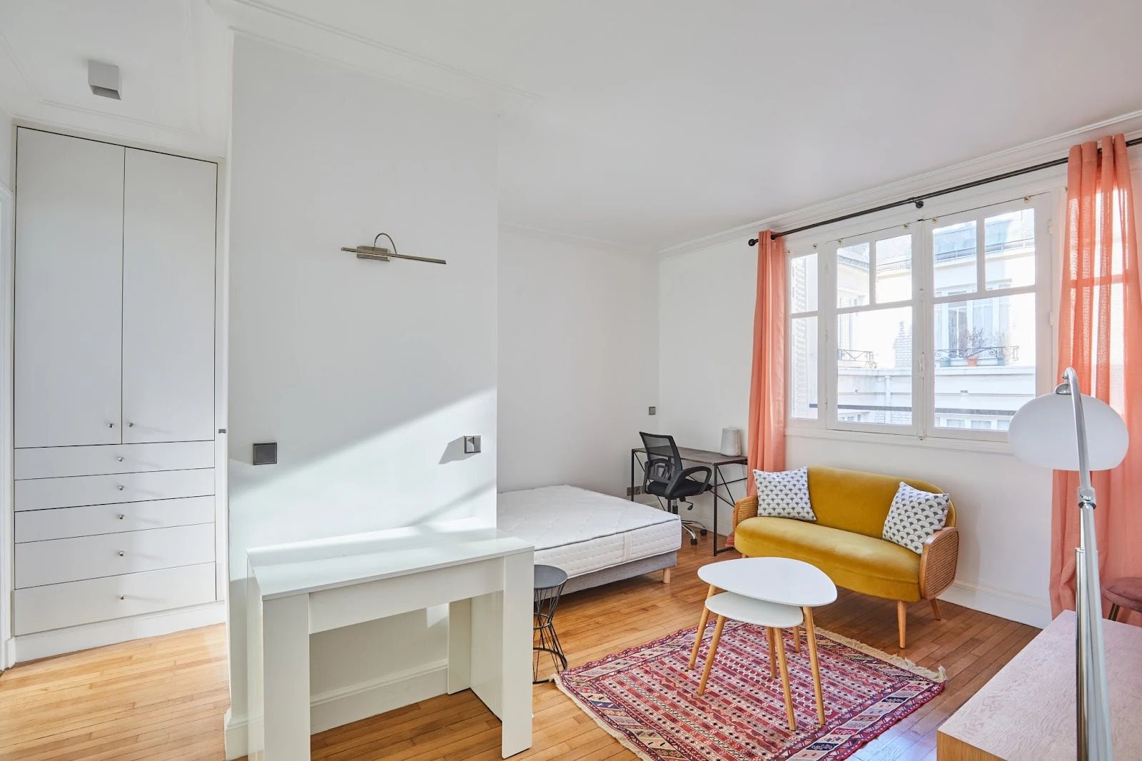 Entre le Jardin du Ranelagh et la Maison de La Radio, au 6ème étage avec ascenseur d'un immeuble en pierres de taille avec gardienne, beau studio de 30m2 à louer meublé, parfaitement aménagé et très ensoleillé grâce à sa double exposition. Pièce principale de 18m2, cuisine indépendante, salle d'eau/WC.
