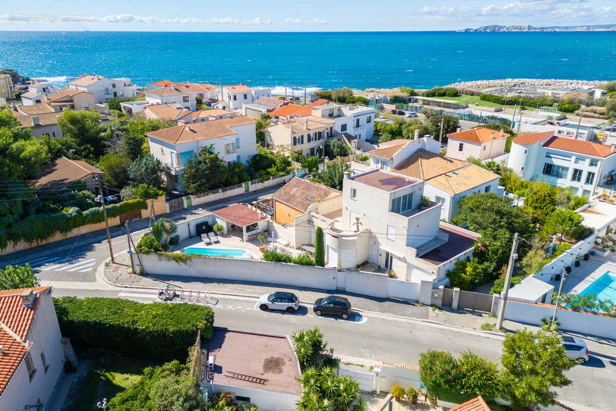 À seulement quelques pas des plages et du Port de la Pointe-Rouge, cette villa rare à la vente incarne le parfait équilibre entre modernité, élégance et art de vivre méditerranéen. Entièrement rénovée en 2010 avec des matériaux haut de gamme, elle offre 212m2 habitables sur trois niveaux, nichée sur une parcelle paysagée de 456m2. Agencement Rez-de-chaussée • Spacieux double séjour/salle à manger lumineux avec cheminée contemporaine • Cuisine indépendante équipée + arrière-cuisine • Deux chambres avec salle d’eau privative, ouvrant sur un patio • Wc invités + buanderie + garage Premier étage • Deux chambres avec rangements et terrasses privatives • Salle de bains avec wc Deuxième étage • Suite parentale exclusive avec dressing et salle d’eau • Terrasse avec superbe vue mer, port et ville Extérieurs & Art de vivre • Piscine 4 x 8,5 m + local technique (cave) • Cuisine d’été équipée + espace repas convivial • Terrasse ensoleillée et jardin arboré • Local extérieur avec wc pour l’espace piscine Prestations & Atouts • Climatisation intégrale • Rénovation contemporaine de qualité certification énergétique Bbc • Potentiel d’agrandissement aux étages • Environnement calme et privilégié, à deux pas de la mer, du Bain des Dames et du Parc Pastré Un bien rare et recherché Dans l’un des secteurs les plus prisés du 8ème arrondissement de Marseille, cette villa séduit par son emplacement exceptionnel, son confort et son charme unique. À découvrir sans attendre opportunité rare sur le marché!