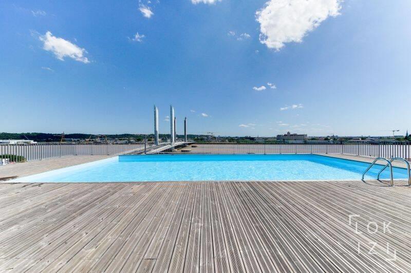 Bordeaux Chartrons / quai de Bacalan. Lumineux appartement T4 meublé de 84m² avec vue sur la Garonne à 180°, balcon-loggia, parking et piscine, entièrement équipé, situé au 5ème étage (ascenseur) d'un immeuble récent, et comprenant : - entrée avec penderie ...