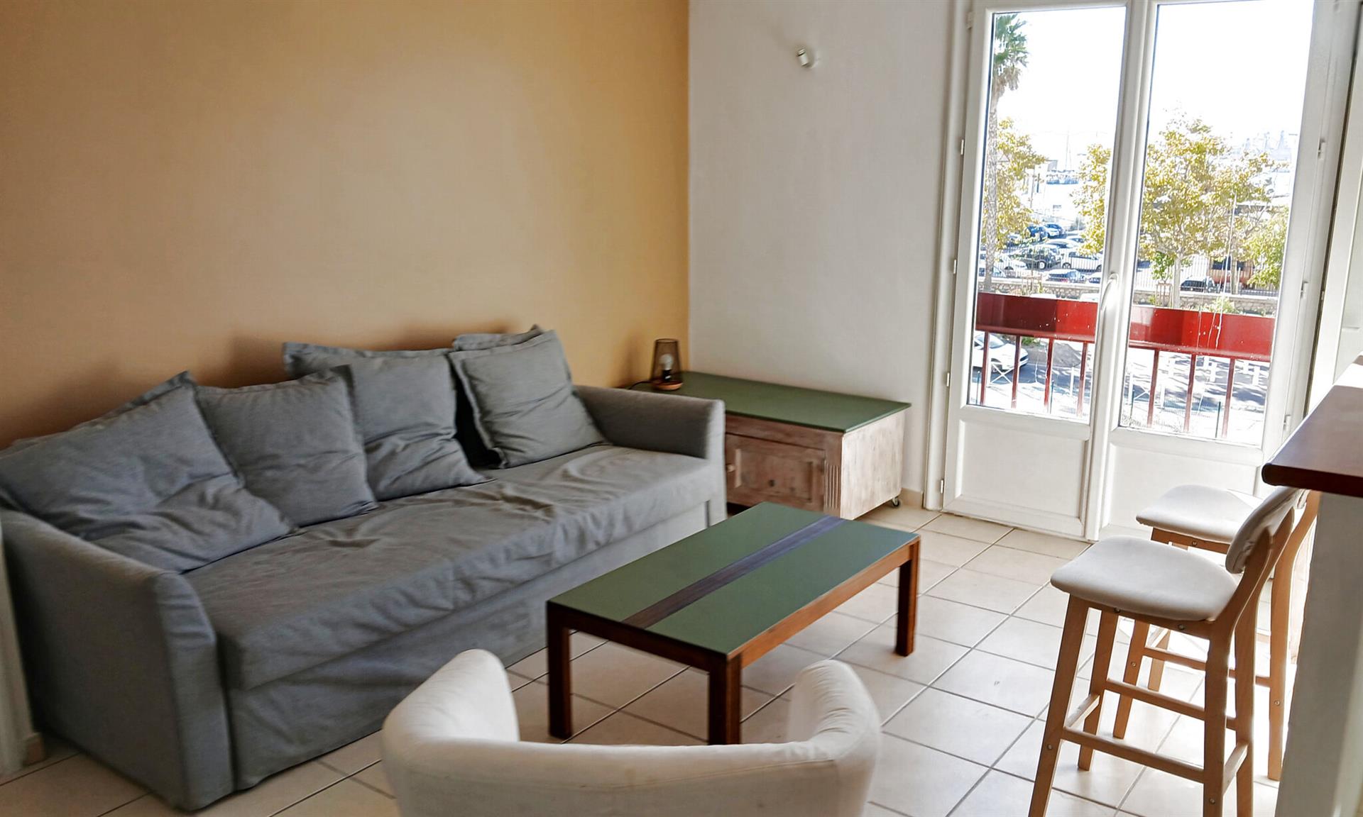 Secteur Toulon Port- Appartement type 2 meublé dans un petit immeuble. Appartement meublé tout confort situé au 2ème étage sans ascenseur, superficie totale de 40m2. Vous disposez d'une entrée, d'une cuisine aménagée et équipée ouverte sur séjour, une loggia avec de grandes baies vitrées. Une chambre avec grand espace de rangement, une salle d'eau avec wc. L'appartement est tout équipé: climatisation été/hiver, machine à laver, réfrigérateur-congélateur, plaques induction et lave-vaisselle. Très lumineux avec jolie vue mer/port. Stationnement aisé au pied de la résidence. Situé à 5 minutes à pied du quartier du Mourillon et du stade Mayol, proche des facs et de l'arsenal.