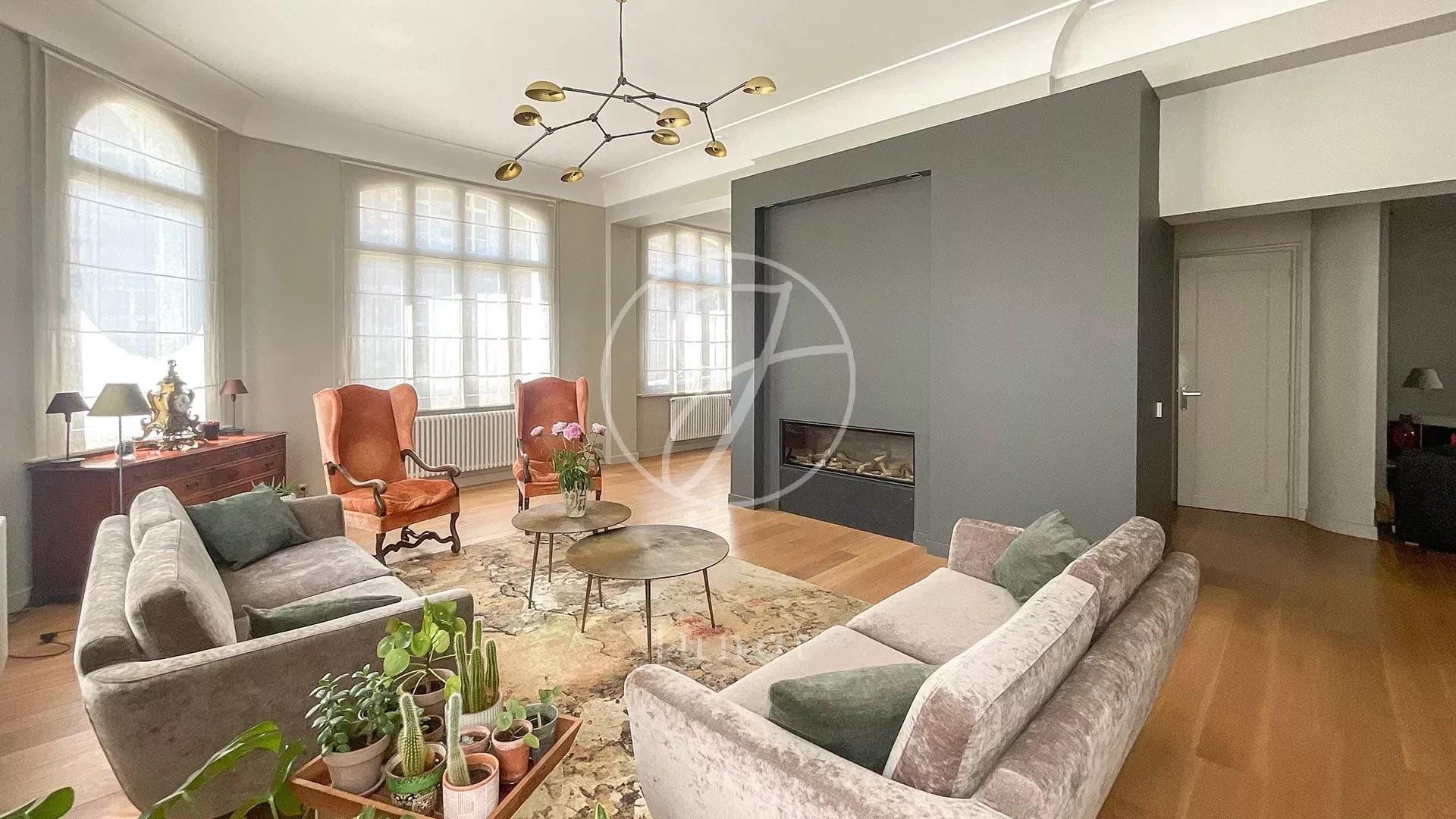 En plein cœur du Vieux-Lille, à deux pas de la citadelle, des commerces et des établissements scolaires, cette élégante maison de 383 m² allie parfaitement le cachet de l'ancien aux prestations contemporaines. Rénovation totale du rez-de-chaussée par un architecte d'intérieur et partielle au 1er étage. Au rez-de-chaussée, un vaste hall d’entrée mène à une triple réception baignée de lumière, comprenant un salon raffiné avec cheminée à gaz, un salon Tv, ainsi qu’une cuisine haut de gamme avec îlot central, prolongée par une salle à manger s’ouvrant sur une terrasse paisible avec vue verdoyante. Un élégant escalier en fer forgé conduit au premier étage, distribuant une superbe suite parentale avec dressing et salle de bains privative, trois autres chambres, dont une avec salle d’eau et Wc, une salle de douches et toilettes indépendantes. Une vaste terrasse de 36 m² sans vis à vis complète cet étage. Le second étage de 120 M², pouvant être dédié à la location ou à un usage indépendant, propose cinq chambres, non mansardées, avec points d’eau, une cuisine équipée commune, une grande salle de bains et des toilettes séparées. Grand sous-sol sain, avec chaufferie, atelier et cave à vin. Un garage et une buanderie complètent ce bien rare. Cette maison, située au cœur du Vieux-Lille, séduit par son emplacement recherché, sa luminosité et sa façade rénovée récemment.