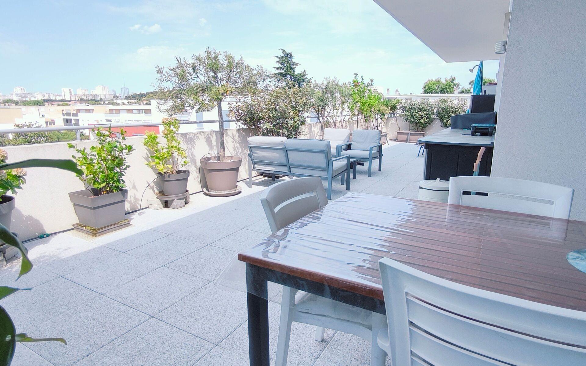 À vendre : Superbe appartement de type 4 récent avec terrasse spacieuse à Nîmes.. Appartement récent avec terrasse spacieuse à Nîmes ! Découvrez ce magnifique appartement de 95 m², situé dans une résidence récente de seulement 5 ans, au calme et sans vis-à-vis. Ce bien lumineux dispose d’une vaste terrasse privative de 57 m², partiellement couverte, idéale pour profiter des beaux jours. L’appartement comprend trois chambres spacieuses, une salle d’eau, deux toilettes, ainsi que de nombreux placards de rangement. La cuisine entièrement équipée s’ouvre sur un grand salon-salle à manger, lui-même donnant sur la terrasse. Vous bénéficierez également de deux places de parking privatives en sous-sol, d’un ascenseur, et de la climatisation intégrale. Les prestations sont de très bonne qualité, et aucun travaux n’est à prévoir. Ne manquez pas cette opportunité ! Contactez Orpi dès maintenant pour organiser une visite.