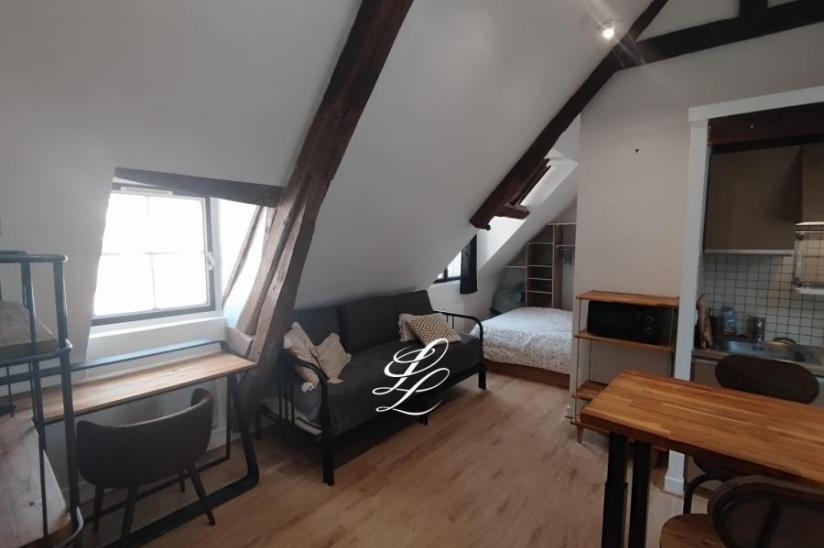 Ce bien immobilier vous est proposé En Exclusivite dans votre agence immobilière Lelievre Immobilier. A Louer - Rue Saint Thomas - Meuble 20M2 situé au 3ème étage et dernier - logement entièrement refait comprenant une entrée avec bureau, une pièce de vie avec canapé et coin cuisine, une coin nuit, Sdb avec Wc. Libre