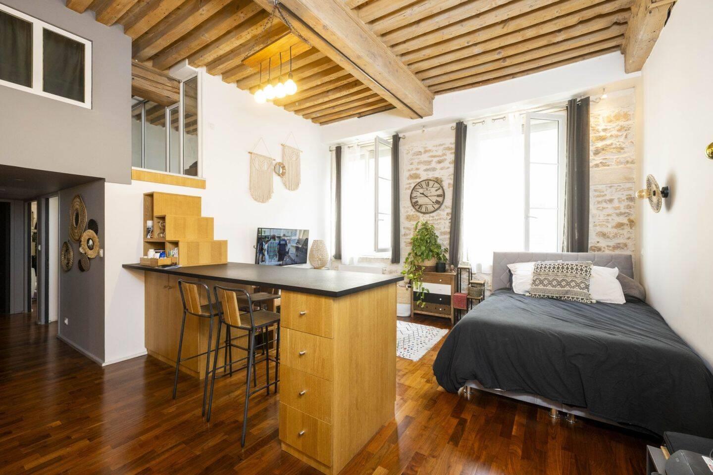 Haut des pentes, proche de la Mairie, au sein d'un immeuble ancien, beau T3 rénové de 75m² (57m² carrez) comprenant une entrée, un séjour avec une cuisine ouverte équipée donnant accès à une mezzanine de 16,80m², une partie nuit composée de 2 chambres, une salle de douche, un wc, et une buanderie. Un grand grenier complète l'ensemble. Immeuble en copropriété, 12 lots. Honoraires à la charge des vendeurs. Dpe 206 (D) Ges 6 (D). Contact Jérémy Mougin au zéro 6. ou à l'adresse mail Médiation Les informations sur les risques auxquels ce bien est exposé sont disponibles sur le site Géorisques :