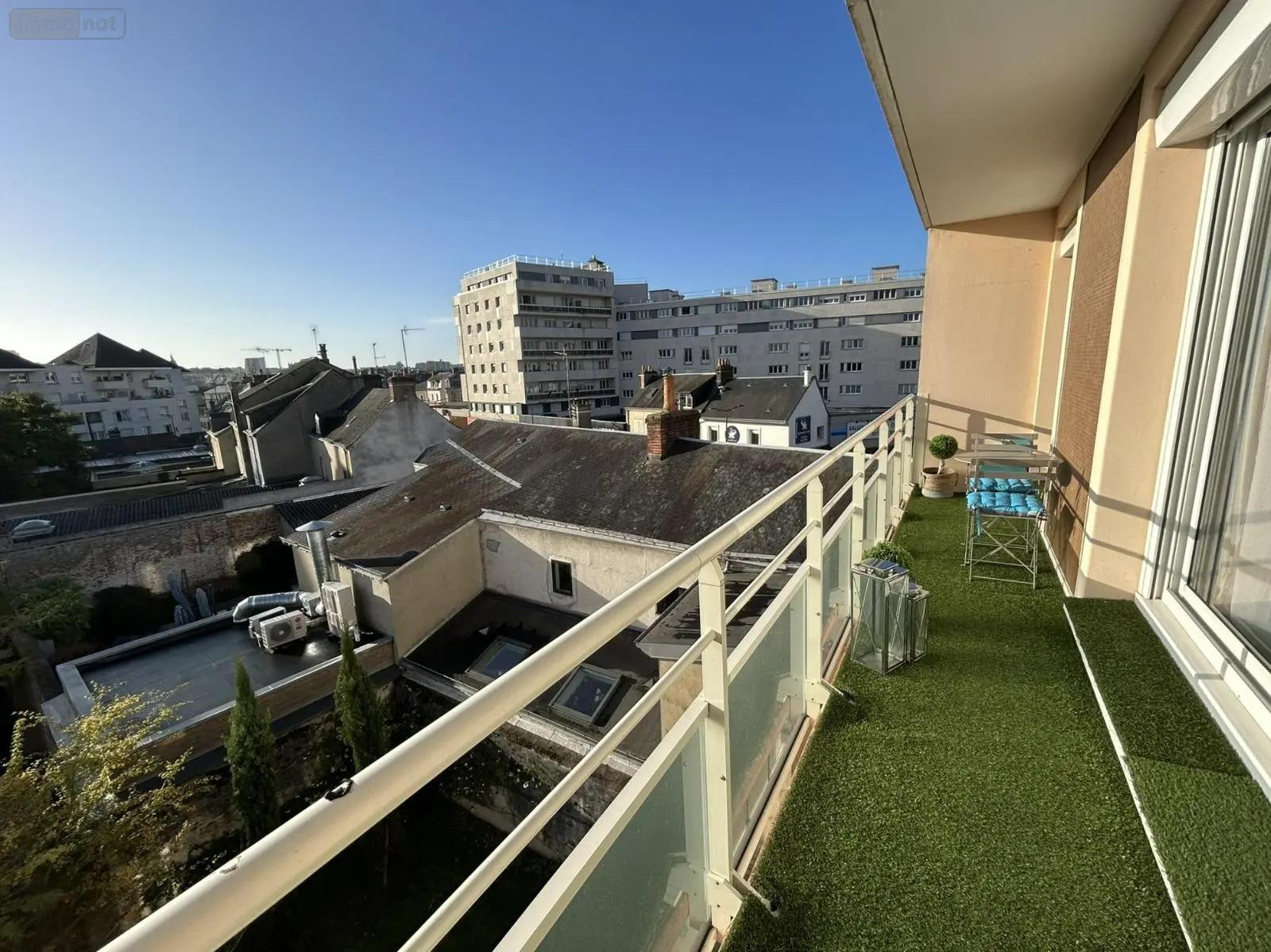Le Mans Rive Droite/Croix D'or - A proximité des commodités et parfait état général pour ce lumineux T5 traversant de 100,67 m². Rénové récemment et situé au 3ème étage sans ascenseur, il comprend : entrée 3,74 m², salle de séjour et salon 38,89 m² avec balcon Sud/Est 6,80 m², cuisine aménagée 10,59 m², dégagement 5,51 m² avec 2 rangements (1,40 m² et 1,78 m²), 3 chambres (10,77 m², 10,47 m² et 10,30 m²), salle de bains 7,76 m² (douche et baignoire et poste buanderie), Wc. Avec lavabo 0,99 m².Balcon, grande cave de 13,54 m² au sous-sol, chauffage central et production d'eau chaude sanitaire individuels au gaz naturel.Montant annuel des charges courantes de copropriété 1.493,72 €, montant annuel du fonds travaux Alur 240,96 €.Copropriété de 84 lots dont 42 à usage d'habitation, de commerces ou de bureaux.