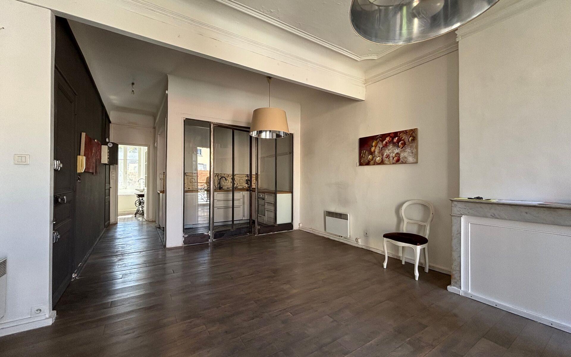 Vente appartement haussmannien T2 55m² - Toulon Haute Ville (83000). Au cœur de la Haute Ville De Toulon, dans un immeuble Haussmannien retrouvez au 3ème étage sans ascenseur un appartement T2 de 55m². Traversant Est/Ouest, il se compose d'une grande pièce de vie lumineuse, d'une cuisine semi ouverte avec verrière sur mesure, une spacieuse salle de bain avec baignoire en îlot (possibilité de d'y ajouter une douche : raccordements déjà prêts), une chambre et Wc séparés. Une chambre de bonne de 7m² au 4ème et dernier étage vient compléter le tout. Appartement avec beaucoup de cachet. Quelques travaux à prévoir. Proche des commodités et de la gare de Toulon, cet appartement est idéal pour un premier achat, un investissement locatif ou un pied a terre.