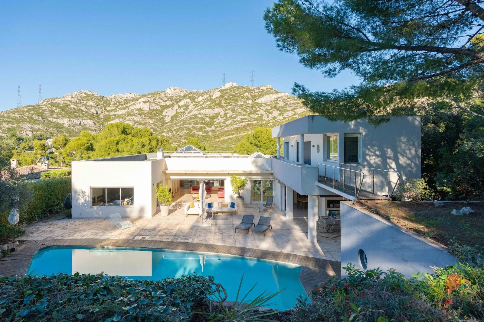 Exclusivite - Édifiée en 1997 par Philippe Puvieux, cette maison contemporaine de 253 m2 avec piscine arrondie et jacuzzi surplombe le quartier de La Panouse. Unique en son genre, cette propriété offre un style rappelant un bateau moderne, avec ses lignes géométriques et ses courbes inspirées de l'univers nautique. Répartie sur trois niveaux, la maison comprend cinq chambres, dont deux situées au rez-de-chaussée. Les matériaux ont été soigneusement sélectionnés : les boiseries sur mesure en hêtre massif contrastent avec l'esthétique épurée des vastes volumes blancs du salon de 81 m2, agrémenté d'une cheminée pour une ambiance chaleureuse. Un jeu d'intérieur/extérieur est finement travaillé grâce aux grandes baies à galandage qui s'ouvrent sur une terrasse panoramique de 180o, équipée d'une cuisine d'été. La lumière baigne chaque recoin de la maison, offrant des vues dégagées sur la verdure et, à l'étage, une jolie vue sur la mer. Les volumes généreux de cette demeure en font un véritable cocon familial niché dans un écrin de verdure. Un box de 47 m2 pour 3 voitures ainsi que de nombreuses places de stationnement complètent ce bien, en plus d'une grande cave en sous-sol. Dpe : C/C. Honoraires inclus charge vendeur. Non détention de fond. Contact : Patricia Baradat .
