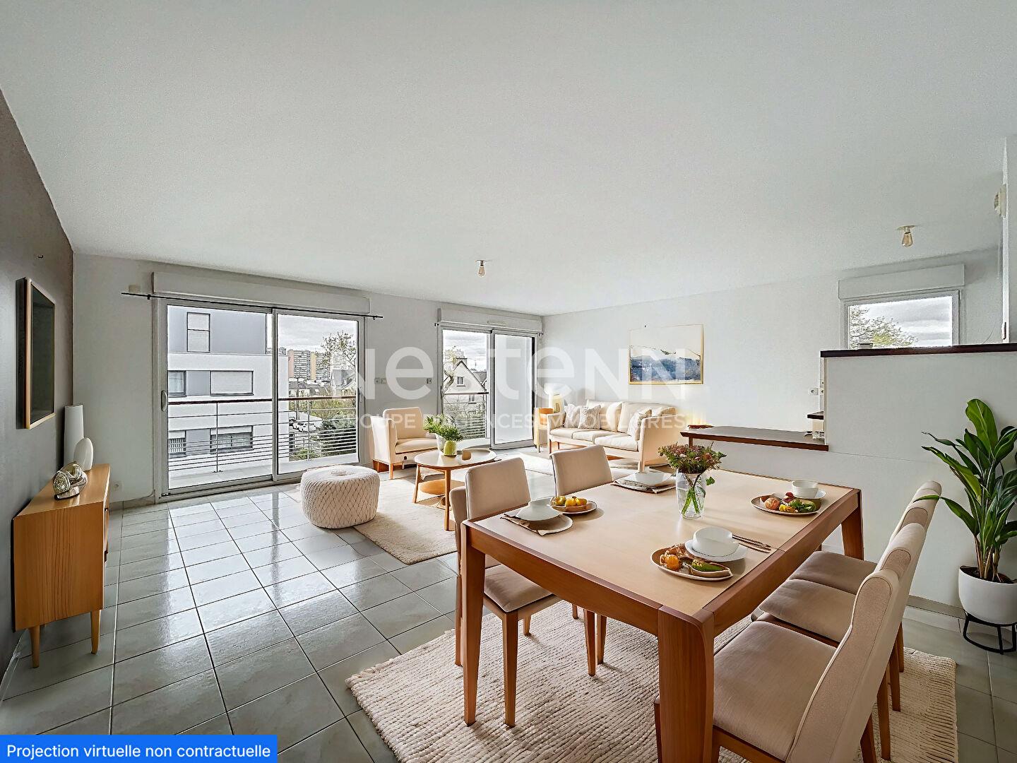 Nestenn Brest vous propose ce bel appartement de 81 m², situé dans une résidence récente et bien entretenue, sécurisée et équipée d'un ascenseur. Idéalement situé au 2e étage, dans un quartier résidentiel calme entre le vallon de Stang Alar et Kergaradec, cet appartement bénéficie d'une situation privilégiée, proche des axes principaux de Brest et de toutes les commodités. L'appartement se compose comme suit : Une entrée spacieuse et bien agencée, offrant de nombreux rangements, qui mène aux différents espaces de l'appartement. Le vaste salon-séjour de 41 m² est baigné de lumière naturelle grâce à son exposition sud-ouest. La cuisine aménagée, ouverte sur la pièce à vivre, crée un espace convivial et lumineux. L'ensemble de cet espace est prolongé par un grand balcon filant, offrant un agréable espace extérieur. La partie nuit comprend deux chambres aux surfaces généreuses, ainsi qu'une salle de bains. Ce bien dispose également d'une place de parking privative. L'ensemble des menuiseries est équipé de volets roulants électriques Si vous recherchez un appartement lumineux, offrant des volumes confortables et des prestations de qualité, n'hésitez plus et contactez-nous pour plus d'informations !