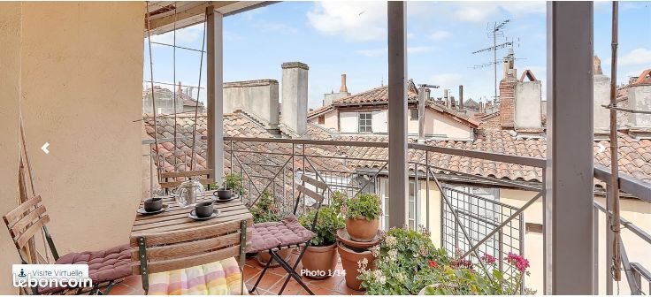 Duplex 4 pièces 83 m² Quartier Esquirol, appartement 4 pièces de 83 m2 en duplex, au 4ème et dernier étage avec ascenseur, au calme dans une cour intérieure de l'hôtel classé de Palaminy situé rue Peyras. La terrasse couverte charmante, et bien orientée (Ouest), donne sur les toits du Vieux Toulouse. On profite de la vue vers la tour de l'hotel d'Assezat, et des tours de la rue Saint Rome. L'entrée (5m2) est équipée de grands placards/penderies. La cuisine contemporaine, entièrement équipée (plaque de cuisson, four, lave vaisselle, frigidaire-congélateur) est ouverte sur le séjour vaste et trés lumineux (35 m2) éclairé par une baie vitrée. La chambre (12m2), équipée d'un placard penderie, a une salle de bain attenante (5,5 m2) avec baignoire dans laquelle se trouve une installation buanderie (lave linge et séche linge). Les wc avec lave mains sont indépendants. L'escalier mène à la 2ème chambre (10 m2) équipée de grands placards, avec salle d'eau (4,5m2) douche et wc. Un espace bureau (12 m2) est aménagé à l'étage. Cet espace peut aussi servir de chambre d'appoint. Un vaste grenier, 10 m2 de plancher, permet de stocker. Il n'est pas aménageable. Chauffage électrique. Eau chaude par cumulus Thermor 200L. Pas de gaz Pas de parking. Vous pouvez garer votre voiture sous le porche de l'immeuble le temps de vider votre coffre, puis allez vous garer au parking Indigo place Esquirol situé à 2 minutes (abonnement annuel). À proximité : - Place Esquirol à 180 m (2 minutes à pied) - Rue Alsace Lorraine à 80 m (1 min à pied) - Place du Capitole à 450 m (5 minutes à pied ) - Marché couvert des Carmes à 500m (7 min à pied) Copropriété (17 appartements) trés soignée qui ne nécessite pas de travaux. Charges 222 EUR/mois Taxe foncière : 1226 Eur Dpe : E - Ges : B Prix Frais d'Agence Inclus : 482 000 Eur Frais d'agence 3,5% à la charge de l'acquéreur Surface : 83 m² A propos de la copropriété : Pas de procédure en cours Nombre de lots : 17 Date de réalisation du diagnostic énergétique : Consommation énergie primaire : 253 kWh/m²/an Consommation énergie finale : 0 kWh/m²/mander plus d'informations