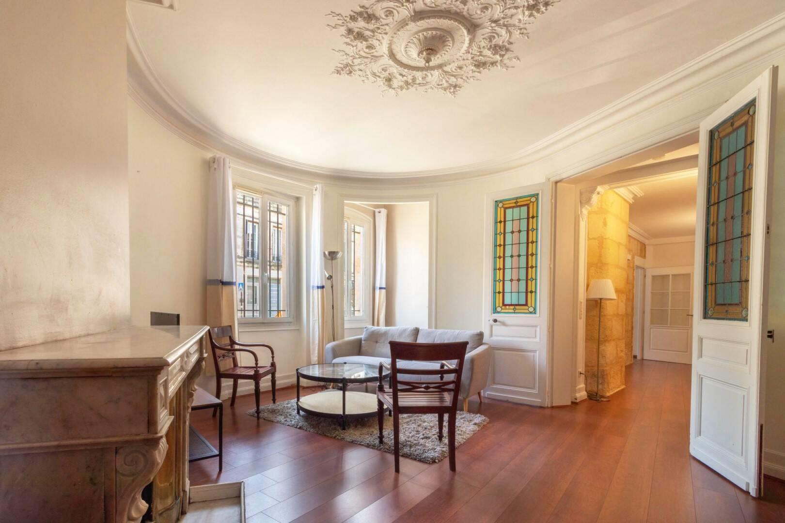 Très bel appartement de type T3/T4 avec patio, entièrement meublé et aménagé en rez-de-chaussé, situé cours Saint Louis proche de la place Picard. En parfait état et d'une surface de 117m², il se situe dans le quartier des Chartrons, à moins de 10min des trams C et B et de toutes les commodités (un grand Auchan se trouve à 7min à pied). Cet appartement dispose d'une entrée privative, il se vit comme une maison avec de jolies prestations anciennes (carreaux de ciment, parquet, cheminée et moulures). L'appartement se compose : -D'une entrée avec placard (stockage de deux vélos possible), -D'une buanderie avec lave-linge et de nombreuses étagères, -D'un bureau pouvant servir de chambre d'enfant, -D'un coin nuit, idéal pour un enfant, -D'une pièce avec un grand dressing pour toute la famille, -D'un grand séjour de 35m² avec cuisine ouverte aménagée et équipée (lave-vaisselle, plaques de cuisson, four, hotte, évier) donnant sur le patio, -D'une chambre donnant sur le patio également, -D'une salle de bain avec double vasque, -D'un Wc séparé, -D'un patio de 12m². Disponible dès maintenant. Loyer : 1 515 euros charges comprises. Charges de 50 euros/mois inclus dans le loyer (charges de copropriété et taxe d'enlèvement des ordures ménagères). Caution équivalente à 2 mois de loyer hors charge, soit : 2 930 euros. Honoraires de location : 1 500 euros. Cet appartement respecte l'encadrement des loyers (décret du ) établi à Bordeaux : – Le secteur géographique du bien se trouve dans la zone 2. – Le loyer de référence majoré pour un bien meublé de 2 pièces et plus est de 18,5 euros/m². Honoraires de 1 500 euros Ttc à la charge du locataire. Zone soumise à encadrement des loyers. Loyer de référence majoré (loyer de base à ne pas dépasser) 2164.5 euros/mois. Loyer de base 1465 euros/mois. Provision sur charges 50 euros/mois, régularisation annuelle. Dépôt de garantie 2 930 euros. Classe énergie D, Classe climat B Montant moyen estimé des dépenses annuelles d'énergie pour un usage standard, établi à partir des prix de l'énergie de l'année 2021 : entre 1610.00 et 2220.00 euros. Les informations sur les risques auxquels ce bien est exposé sont disponibles sur le site Géorisques : .
