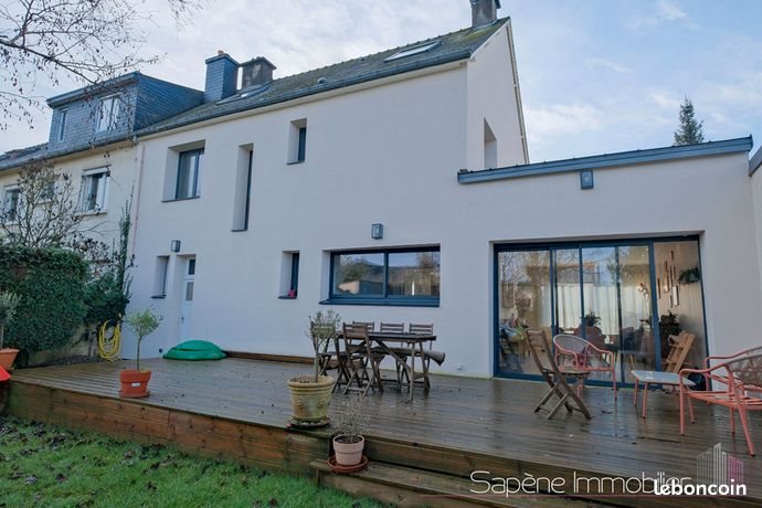 Maison 7 pièces 136 m² Nouveau -Exclusivité- Rennes - Cimetiere De L'est Au calme, idéalement située dans un petit quartier résidentiel, venez découvrir cette superbe maison des années 60 rénovée avec extension contemporaine d'une surface de 136.28m² habitables et 158.57m² au sol, édifiée sur une parcelle de 397 m² et composée : Entrée avec placards, vaste séjour-salon traversant Sud avec puits de lumière et accès de plain pied à la terrasse et au jardin, installation possible d'un poêle, cuisine semi ouverte entièrement aménagée et équipée ( four, plaques induction, hotte, lave-vaisselle, micro-ondes, réfrigérateur-congélateur), Wc séparé. Joli jardin clos et arboré sans vis à vis à l'arrière de la maison, potager à l'avant. A l'étage : dégagement, une suite parentale avec dressing et salle d'eau, deux autres chambres, salle de bains et Wc séparé. Au deuxième étage : Dégagement, deux belles chambres mansardées traversantes et un Wc séparé avec point d'eau En annexes : un grand garage fermé et un abri de jardin, possibilité de stationner d'autres véhicules devant la maison. Une maison rénovée 'campagne à la ville', idéal pour une famille, qui n'attend plus que vous ! Accès facile à la gare. Surface : 136 m² Date de réalisation du diagnostic énergétique : Consommation énergie primaire : 112 kWh/m²/an Consommation énergie finale : Non communiqué Montant estimé des dépenses annuelles d'énergie pour un usage standard : entre 1 490 € et 2 070 € sur les années 2021, 2022 et 2023 (abonnements compris). Les informations sur les risques auxquels ce bien est exposé sont disponibles sur le site Géorisques : plus d'informations
