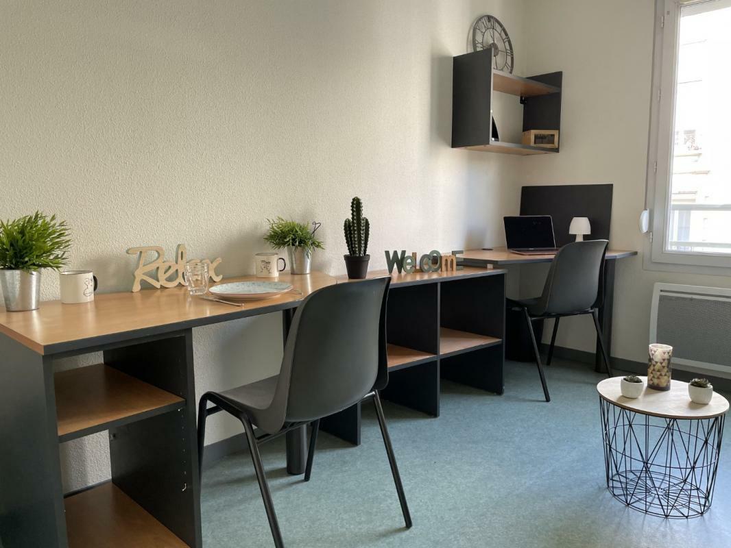 Studio meublé à louer à Saint-Etienne : Venez découvrir ce studio meublé, entièrement équipé, situé dans une résidence sécurisée proche de la faculté, de Centre Deux et du tramway, elle propose de nombreux services tels que : salle de fitness, une salle détente, une laverie, une salle petit-déjeuner ainsi qu'un intendant. Ce studio dispose d'un coin cuisine, une chambre, un espace travail et une salle de bain. IDÉAL pour étudiant. Loyer mensuel : 335.50 € - Provisions sur Charges : 50 €. - Dpe : D Les informations sur les risques auxquels ce bien est exposé sont disponibles sur le site Géorisques :