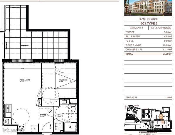 Orleans - Appartement T2 - 39.30 M2 Orleans - Dans une résidence neuve au rez-de-chaussée, un appartement T2 comprenant une entrée, une salle d'eau, une chambre et un séjour avec coin cuisine aménagée et équipée (hotte, plaques, four). Et le droit à la jouissance privative d'une terrasse. En + une place de parking située au sous-sol. Dispo Le 30 Septembre Dpe En Cours Photos en cours Si cette annonce vous intéresse nous vous invitons à déposer votre dossier uniquement sur le site de Square Habitat : Les informations sur les risques auxquels ce bien est exposé sont disponibles sur le site Géorisques : /AOpZcXQe. Référence annonce : Cl-Loc-250908 Non soumis au Dpe Honoraires à la charge du locataire : 510 € Ttc dont 117 € pour l’état des lieux Dépôt de garantie : 543 € Montant des charges : 50 € / mois Modalité de récupération des charges locatives : provision avec régularisation annuelle A propos de la copropriété : Pas de procédure en mander plus d'informations