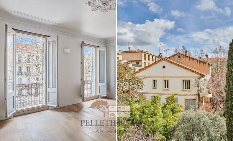 Situé sur la prestigieuse avenue Victor Hugo, à quelques pas du Cours Mirabeau, en plein centre-ville d'Aix en Provence, cet appartement T5 en exclusivité conjugue élégance et rareté. Traversant et sans vis-à-vis, il bénéficie d'une luminosité remarquable, une qualité rare en plein centre-ville. D'une superficie de 103m², il se distingue par ses volumes généreux et ses espaces baignés de lumière. Le séjour, exposé à l'ouest, s'ouvre sur un balcon offrant une vue totalement dégagée. Une cuisine fonctionnelle s'intègre harmonieusement à l'ensemble, avec dans son prolongement une salle à manger surplombant un jardin. L'espace nuit comprend trois chambres, dont une chambre principale aux dimensions remarquables, une seconde spacieuse et une troisième plus intime, idéale pour un bureau ou une chambre d'appoint. Ce bien allie confort moderne et charme intemporel par sa rénovation soignée, sa climatisation réversible gainable qui se double d'un chauffage central au gaz, et son parfait état général. Pour plus de commodité, une possibilité de location de parking est proposée à proximité. Atout supplémentaire, un grenier aménagé indépendant vient enrichir cette adresse exclusive, offrant un espace polyvalent. Une opportunité unique dans l'une des adresses les plus convoitées d'Aix-en-Provence. Copropriété de 8 lots (Pas de procédure en cours).