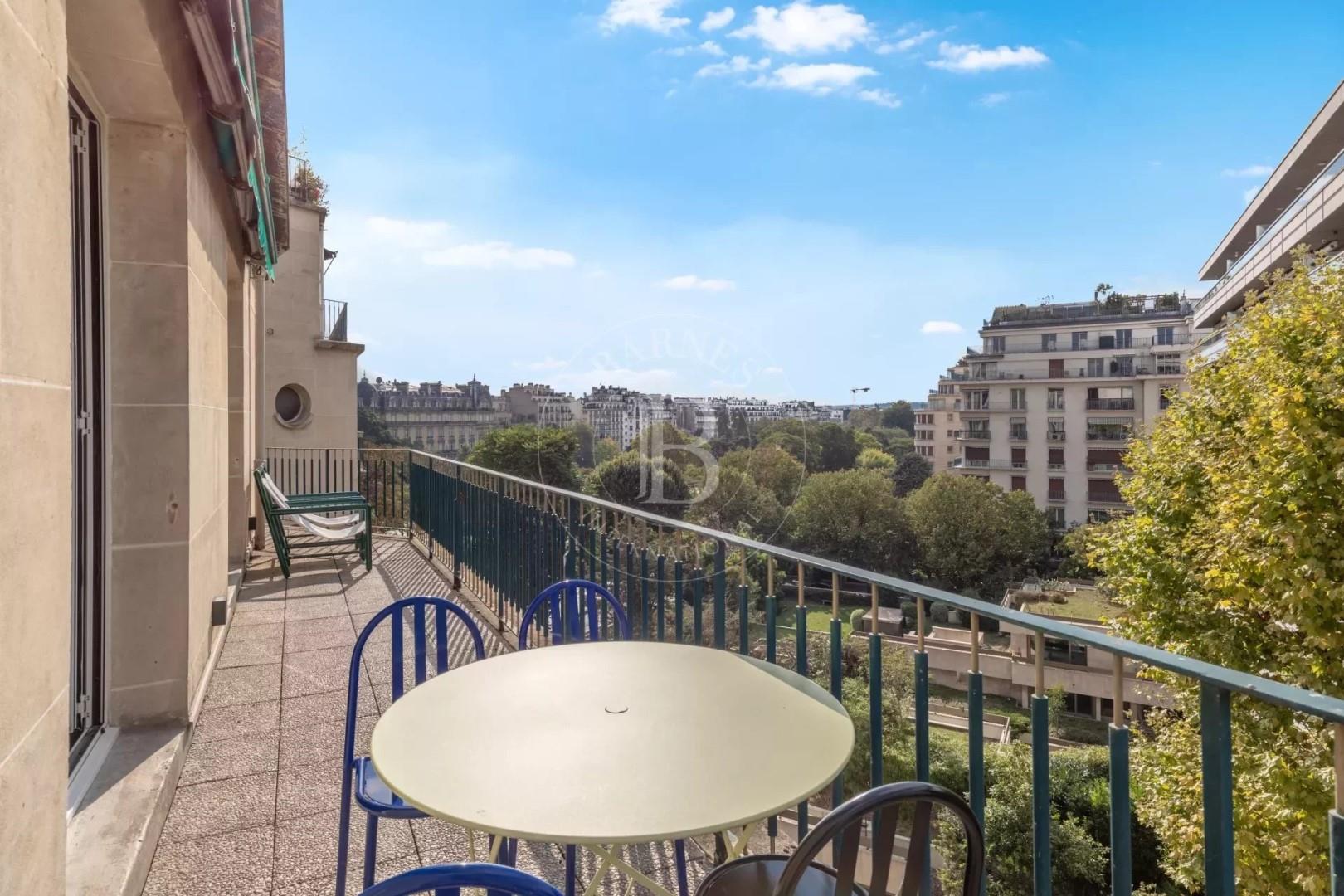 Superbe appartement avec extérieur exposé plein Ouest, idéalement situé avenue Foch, à deux pas de l'Arc de Triomphe, au 6ème étage par ascenseur d'un bel immeuble d'angle conçu par l'atelier Greggory-Morandi en 1959, gardienné et sécurisé. D'une superficie d'environ 90m² et doté d'un balcon large de près de 30m² faisant son tour, ce bien offre une très belle vue dégagée sur les jardins Foch, les toits, le ciel et l'horizon. Son exposition avec grandes ouvertures sur l'extérieur, doublée de sa qualité traversante lui confèrent une très belle luminosité. Ayant fait l'objet d'une rénovation luxueuse dans un style résolument contemporain, les espaces de vie de ce bien atypique ont été repensés pour offrir une circulation fluide, un séjour pourvu de très beaux volumes - près de 60m² - et décoré avec soin laissant place à une magnifique vue dans le ciel et les arbres. Dans un esprit suite, une spacieuse et lumineuse chambre donnant elle aussi sur l'extérieur, bénéficiant d'une vue dans les arbres et les toits parisiens et dotée d'une salle de bains. Ce bien rare à l'emplacement prisé bénéficie de prestations recherchées et d'une empreinte unique qu'il s'agisse de ses lignes épurées, la création d'agencements sur mesure astucieux et ludiques dans le choix des couleurs ou encore le soin pris dans la sélection des matériaux. Cave. Possibilité de louer un parking à proximité immédiate.