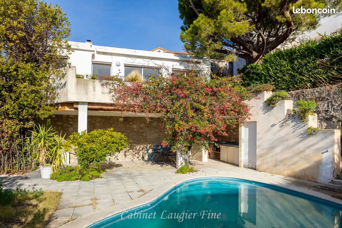Dans une petite copropriété, le Cabinet Laugier Fine vous propose à la vente une villa de 196m² dissimulée derrière les murs de Bompard, lovée autour d’un magnifique pin parasol, à seulement 10 minutes à pied de la mer. Au calme absolu, cette villa de plain-pied, exposée plein sud, s’organise autour d’un jardin dans un esprit hacienda, avec une élégante promenade abritée par des colonnes. À l’intérieur, un vaste salon de 55m² avec cheminée et 5 baies vitrées bénéficie d’une belle luminosité tout au long de l’année, sans aucun vis-à-vis, laissant entrer généreusement la lumière et le paysage. Une cuisine, une buanderie et deux chambres de 32 et 12m², une salle de bains, un dressing composent l’aile est de la maison avec la possibilité de créer une chambre supplémentaire. À l’ouest, une suite parentale avec sa salle d’eau et son espace dressing permet de préserver son intimité. A l'entrée du jardin, un studio équipé permet d’accueillir famille ou amis de passage. L’architecture de la maison est originale et de qualité, avec un bâti harmonieusement organisé autour des terrasses et du jardin, dans un esprit hacienda. D'importants travaux de rénovation et de remise au goût du jour seront nécessaires afin de révéler pleinement le potentiel et le caractère de cette propriété. Son atout majeur : une grande terrasse, abritée du vent, offrant une vue charmante sur le Vallon de l’Oriol, la mer et de somptueux couchers de soleil. Devant la terrasse, un escalier en pierre mène à une piscine et sa cuisine d’été, recouverte d’un magnifique bougainvillier, à l’abri des regards, procurant une véritable sensation de vacances au quotidien. Un garage avec ouverture automatique permet de stationner une voiture, un deux-roues et d’aménager des espaces de rangement. Si vous êtes a la recherche d'un projet auquel vous pourrez donner libre cour a vos envies, ce havre de paix n'attend plus que vous ! Charges : 266 € / Mois Taxe foncière : 4 220 € / An