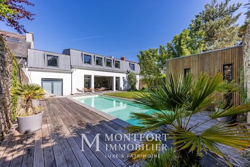 Nouveauté / Montfort Immobilier Luxe & Patrimoine Nantes - La Baule - Pornic Idéalement située dans le quartier recherché de Mellinet à Nantes, cette maison familiale offre un cadre de vie exceptionnel, au cœur d’un environnement calme et discret, tout en étant à proximité des commerces, des écoles et des transports. Entièrement rénovée entre 2008 et 2010 par un architecte renommé, elle conjugue avec élégance confort moderne et vastes volumes, dans un style résolument contemporain. Avec une surface habitable de 284 m² (291 m² au sol), elle se déploie sur deux niveaux spacieux et parfaitement agencés. Dès l’entrée, vous serez accueillis par un vaste hall doté d’un vestiaire et de toilettes invités. La pièce de vie généreuse et baignée de lumière naturelle, comprend un salon avec cheminée, salle à manger ainsi qu’une grande cuisine ouverte entièrement équipée, parfaite pour les moments de convivialité. Le rez-de-chaussée accueille également une très belle suite parentale, offrant un espace de vie indépendant et confortable. Celle-Ci comprend une master room spacieuse, un dressing aménagé, une salle de bains avec baignoire et douche, ainsi que des toilettes séparées. Un double garage en enfilade de 44 m², directement accessible depuis l’intérieur de la maison, complète ce niveau. Il intègre aussi un espace lingerie et chaufferie, optimisant ainsi les espaces techniques. À l’étage, le palier aménagé en bureau dessert quatre vastes chambres supplémentaires, dont une nouvelle suite avec dressing et salle de bains privative avec douche et toilettes indépendantes. Une salle d’eau avec toilettes vient également compléter ce niveau. À l’extérieur, vous découvrirez un jardin paysager exposé sud-ouest, entièrement clos de murs en pierre, garantissant une parfaite intimité. Une piscine équipée d’un volet immergé, s’intègre harmonieusement à cet espace de détente. En fond de parcelle, une dépendance de 15 m², utilisée comme pool house, vient compléter les prestations extérieures avec douche et toilettes. Ce bien d’exception se distingue par ses volumes généreux, son calme absolu sans aucun vis-à-vis et ses prestations haut de gamme. Prix de vente 1 490 000 € Hai dont 4.56 % Ttc d'honoraires d'agence charge acquéreur soit un prix net vendeur de 1 425 000 €. Dossier de présentation sur demande. Classe énergie: B Classe climat: A Montant estimé des dépenses annuelles d'énergie pour un usage standard: entre 1 640 € et 2 250 € par an. Prix moyen des énergies indexés au 1er Janvier 2021 Les informations sur les risques auxquels ce bien est exposé sont disponibles sur le site Géorisques: