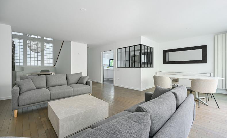 Magnifique Duplex meublé de 106.50 m² comprenant une entrée, un séjour avec terrasse de 29.95 m², une salle à manger, une cuisine séparée équipée, trois chambres, une salle de bains, une salle de douche, deux toilettes. Nombreux rangements sur mesure. Beaux vol...