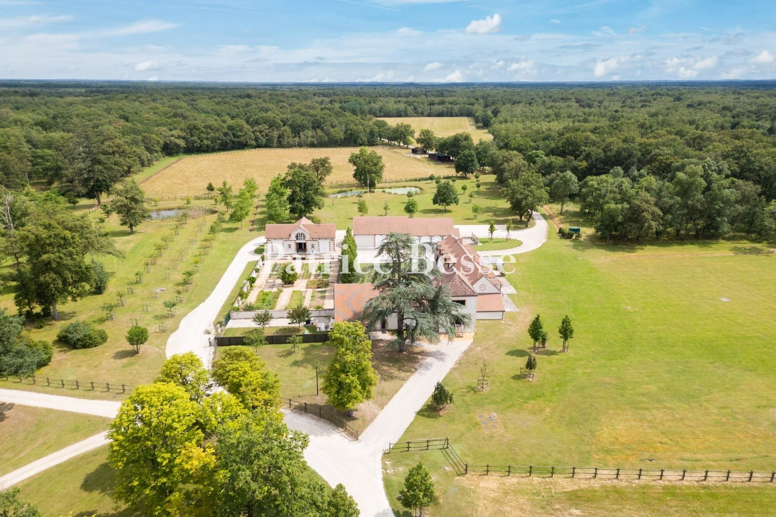 En Sologne, un domaine de chasse ouvert de 650 ha d'un seul tenant, avec lodge, appartements privés, rendez-vous de chasse et dépendances . Depuis une route qui serpente entre deux villages, le rendez-vous de chasse est desservi par une longue allée de près de 2 km, bordée en partie de chênes et de tilleuls récemment plantés. Après deux portails d'entrée, les principaux bâtiments s'organisent en U autour d'une cour-jardin, que borde un potager. Ils sont élevés de deux niveaux dont un sous combles et recouverts de toitures en tuiles plates percées de lucarnes, dans la plus pure tradition solognote. La maison du garde-chasse, le studio des « stagiaires » et un appartement privé sont logés dans le premier édifice. Le lodge occupe tout l'espace du deuxième. Enfin, dans le troisième, prennent place des espaces de dépendance et un second appartement privé. Pour la plupart, les bâtiments ont été rénovés il y a moins de quinze ans. Des matériaux nobles ont été utilisés, comme ceux de l'ancien théâtre d'Orléans. L'ensemble a été parfaitement entretenu depuis. À proximité, une cabane a été installée dans les arbres et un hangar a été construit pour abriter du matériel divers. Le parc s'étend tout autour, encerclé par des bois et sept étangs, sur près de 650 ha, auxquels s'ajoutent 150 ha actuellement loués.