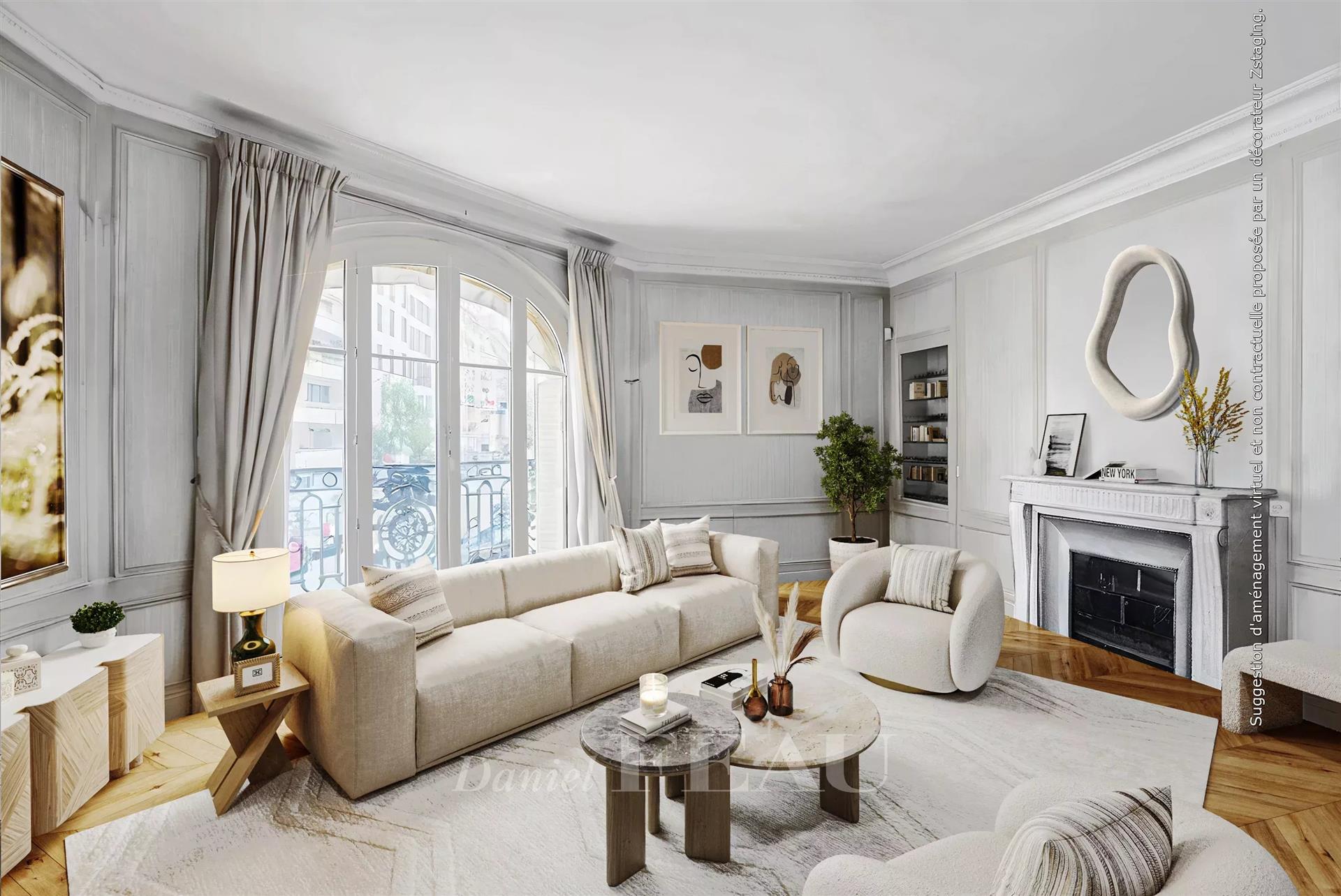 Idéalement situé au cœur des commerces, écoles et transports, dans un magnifique immeuble en pierre de taille de 12 lots, parfaitement entretenu, cet appartement familial d'angle de 167m² à rénover possède tout le charme de l'ancien (parquet, moulures, et cheminées). Il se compose d'une grande entrée, d'une triple réception, d'une grande cuisine dinatoire, de trois chambres d'une salle de bains et d'une salle de douche. Nombreux rangements. Chauffage et eau chaude collectifs urbains (Cpcu), deux ascenseurs. En annexes : - Au sous-sol, une double cave et une cave simple. - Au premier étage coté services, un cagibis. - Au sous-sol d'un immeuble voisin, en sus du prix, un parking.