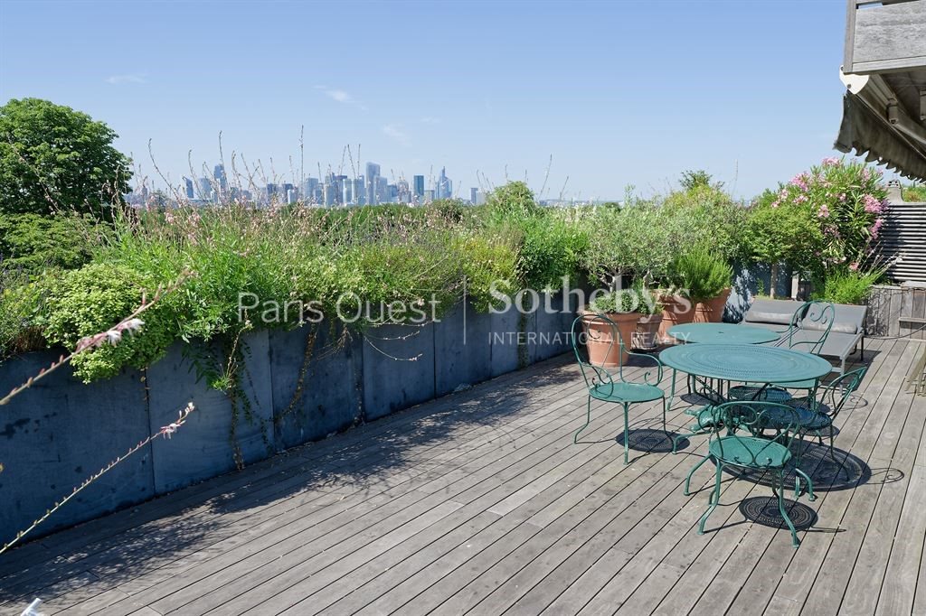Paris Xvi - Jardin Du Ranelagh : Sotheby's International Realty vous invite à découvrir un bien d'exception : un appartement élégant aux caractéristiques recherchées, couronné par un toit terrasse offrant une vue imprenable sur le Bois de Boulogne et La Défense. Situé à quelques pas du jardin du Ranelagh, dans un environnement familial et prisé, ce lieu de vie unique vous offrira un cadre de vie unique. Occupant seul le dernier étage, cet appartement lumineux de près de 200m² avec cheminée fonctionnelle se distingue par ses volumes généreux et son agencement harmonieux. La partie séjour, spacieuse, lumineuse et sans aucun vis-à-vis, permet de profiter de moments conviviaux privilégiés. Coté Est, la salle à manger s'harmonise avec une spacieuse cuisine dinatoire aménagée et équipée, laquelle donne accès à une buanderie discrète et fonctionnelle. La partie nuit se compose quant à elle de deux espaces. L'un, côté Nord, est occupé par une belle et grande suite parentale avec sa salle de bains et ses toilettes. Le second, côté sud, comprend deux chambres séparées par une salle d'eau commune. L'atout magistral de cet appartement réside en son toit-terrasse exceptionnel, accompagné d'un jardin d'hiver vous permettant de profiter de splendides couchers de soleil à tout moment de l'année. Rareté, luminosité et sérénité caractérisent ce bien d'exception, pensé pour offrir un cadre de vie incomparable. Un vaste espace de stockage est également proposé avec une cave de 20 m², aisément accessible par ascenseur. Enfin, un double box de 30 m² complète ce bien rare sur le marché.