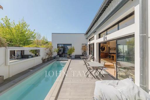 Bordeaux Caudéran - Maison Contemporaine - Piscine - Garage - John Taylor Située à Caudéran, découvrez cette élégante maison construite en 2016 d'environ 185m², bénéficiant de deux espaces extérieurs, d’un couloir de nage chauffé et d’un garage. Cette villa contemporaine de plain-pied, positionnée en retrait de la rue, au bout d’une allée privative, offre un cadre préservé dans un calme absolu et à l’abri des regards. Elle se compose d’une entrée avec placard, un Wc indépendant, une grande pièce de vie avec cheminée, ouverte en partie sur la salle à manger et la cuisine américaine. L’Ensemble donne sur la terrasse avec piscine exposée Sud et sur le patio. L’Espace nuit distribue trois chambres dont une suite parentale avec dressing et salle de bains avec douche, une salle d’eau indépendante et un Wc. L’Allée d’accueil et le garage permettent de recevoir quatre véhicules. La maison bénéficie d’une excellente performance énergétique, grâce notamment à ses panneaux solaires et à son système de climatisation réversible, garantissant confort et maîtrise des consommations.