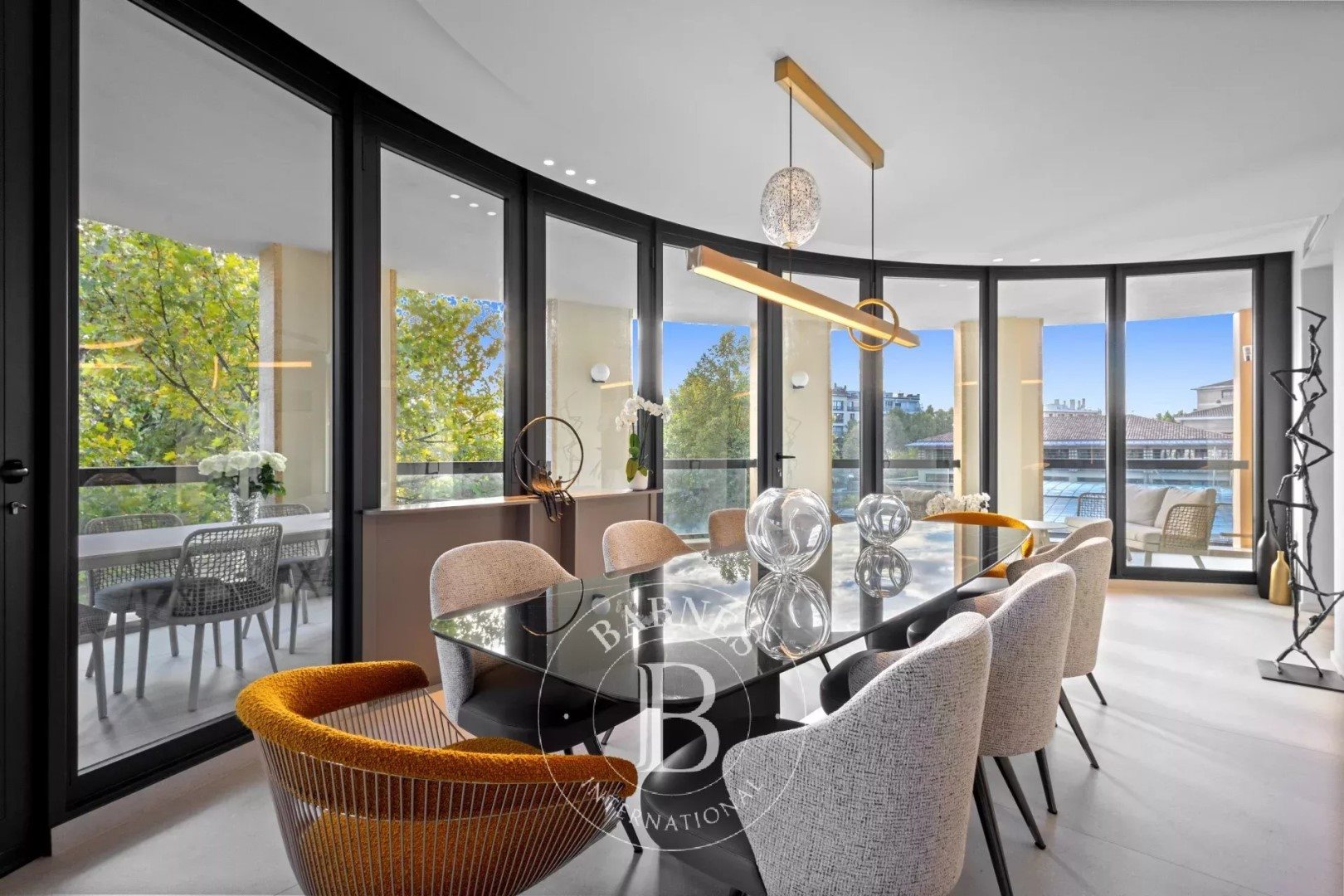 Situé au cœur d'Aix-en-Provence, face à l'iconique fontaine de la Rotonde, ce somptueux appartement d'environ 237 m², au 2 € étage avec ascenseur, a fait l'objet d'une rénovation intégrale menée avec une exigence absolue du détail. L'esthétique contemporaine, à la fois précise et raffinée, met en valeur des volumes généreux sublimés par des matériaux haut de gamme et des finitions d'exception. L'appartement se compose de trois chambres en suite, dont une suite parentale de 53 m², véritable havre de confort et d'élégance. Deux des chambres se partagent un petit balcon et elles bénéficient toutes les trois de nombreux rangements. La pièce de vie d'environ 116 m², baignée de lumière naturelle, s'ouvre par de larges baies vitrées sur une terrasse d'environ 40 m², offrant une vue imprenable sur la ville et la Rotonde. Pour un confort optimal, le bien dispose d'une climatisation gainée réversible ainsi que de deux garages dont un fermé, situés côte à côte en sous-sol et accessible par ascenseur. Charges de copropriété : 6000 € / an Lots n° : 311 et 312 Nombre total de lots : 435 Aucune procédure en cours
