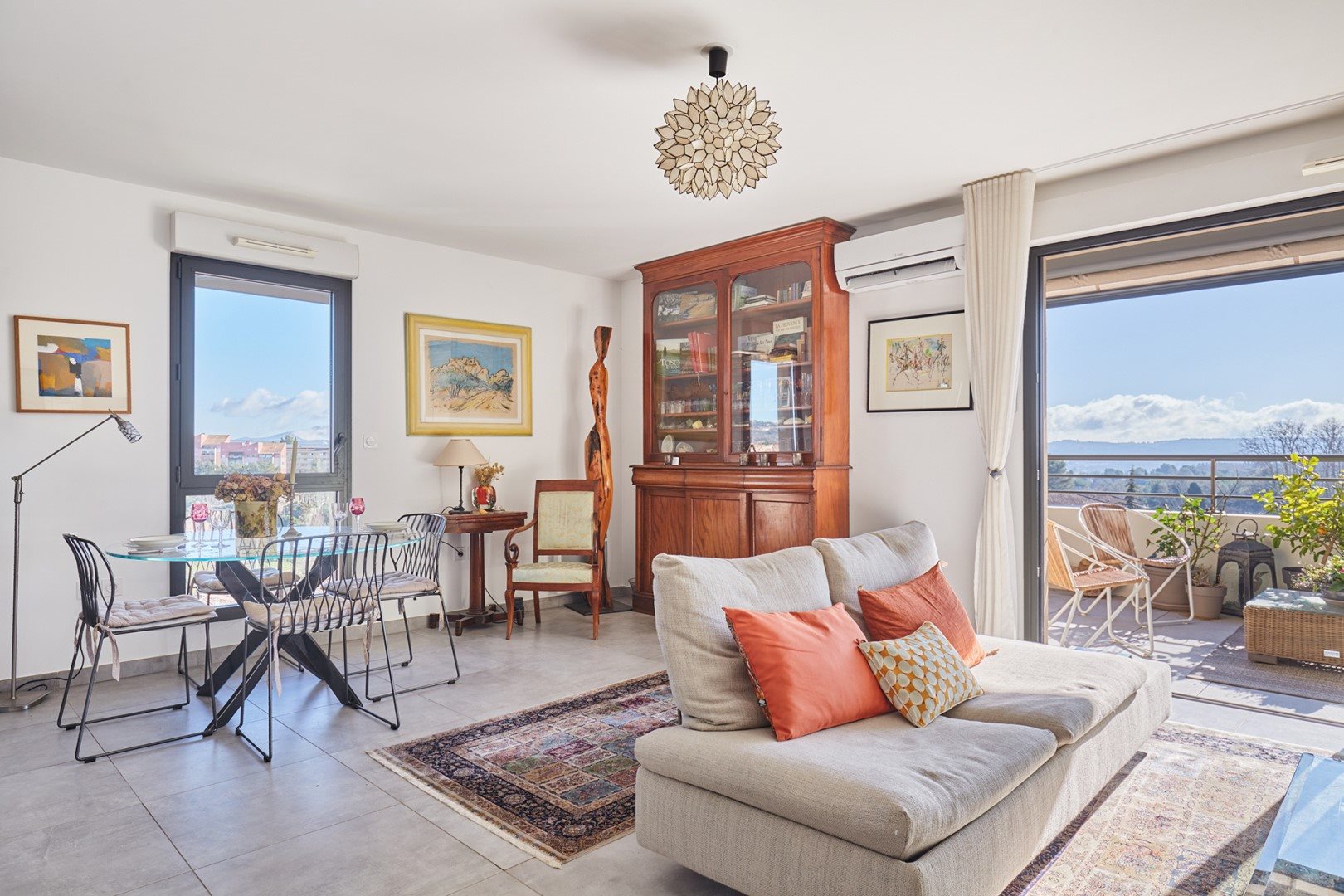 Vous rêvez d’une vue imprenable sur la Sainte-Victoire depuis votre salon ? Découvrez cet appartement traversant de 87 m², niché au dernier étage d’une résidence sécurisée à Aix-en-Provence. Ce bien lumineux avec sa pièce de vie et cuisine ouverte exposée sud-est vous charmera par ses deux terrasses pour profiter de chaque moment de la journée. Côté nuit, vous trouverez trois chambres dont une avec sa salle d'eau privative ainsi qu'une salle d'eau supplémentaire.En sus du prix un box fermé de 19 m² complète ce bien d’exception au prix de 30 000 euros. Copropriété de 50 lots. Montant annuel de charge: 2 336 €. Aucune procédure en cours. Prix de vente: 537 000 Hai, honoraires inclus à la charge de l'acquereur 5%. Rsac 800 379 804.