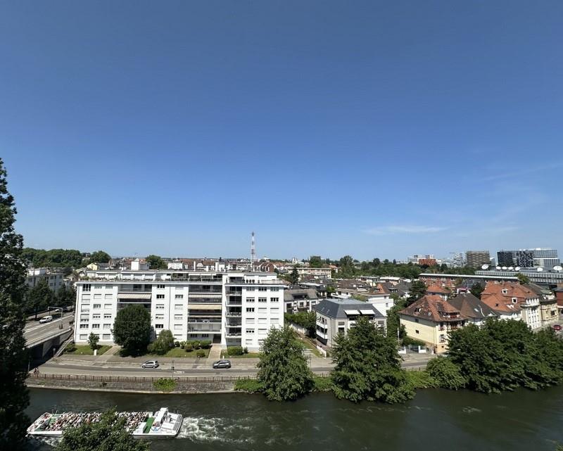 Strasbourg – Orangerie Quai Rouget De Lisle - en étage élevé dans un immeuble de standing avec ascenseur accessible de plain-pied, superbe appartement 5 pièces, traversant, très lumineux, d'une superficie de 137,19 m² avec terrasse vue sur l'Ill, la Cathédrale et les Institutions Européennes, prestations et finitions soignées : parquet chêne, murs lissés, aménagements menuiserie réalisés sur mesure, marbre de Carrare dans les pièces d'eau, comprenant une entrée, un double séjour avec cheminée accès terrasse, une cuisine avec un grand cellier attenant, 3 chambres avec meubles dressing réalisés sur mesure, sanitaires indépendants (Wc, lave-mains), une salle de bains (meuble vasque, douche, baignoire) au sous-sol une cave, garage en location fenêtres double vitrage avec volets électriques, production de chauffage et d'eau chaude collectives au gaz (radiateurs équipés de calorimètres), copropriété de 14 lots principaux, charges de copropriété : 2788,32 euros/an soit 232,36 euros/mois, taxe foncière : 2344 euros, bien rare à la vente bénéficiant d'un emplacement de premier ordre, d'une vue incroyable dans un environnement d'exception.
