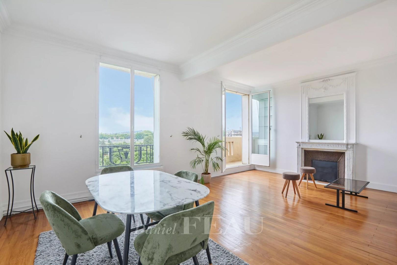 A deux pas de la porte d'Auteuil et de ses commerces, au cinquième étage d'un un bel immeuble ancien doté d'un ascenseur, appartement de 92 m². Loué meublé, il se compose d'une entrée, un double séjour lumineux ouvert sur un balcon, offrant une vue dégagée, une cuisine aménagée et équipée, une chambre avec placards, une deuxième chambre / bureau, une salle de bains et toilettes séparées. Une cave complète ce bien. Eau chaude et chauffage collectifs. Disponible dès maintenant. BAIL Code Civil Exclusivement (résidence secondaire / au nom d'une société / lié à l'exercice d'une fonction). Les informations sur les risques auxquels ce bien est exposé sont disponibles sur le site Géorisques :