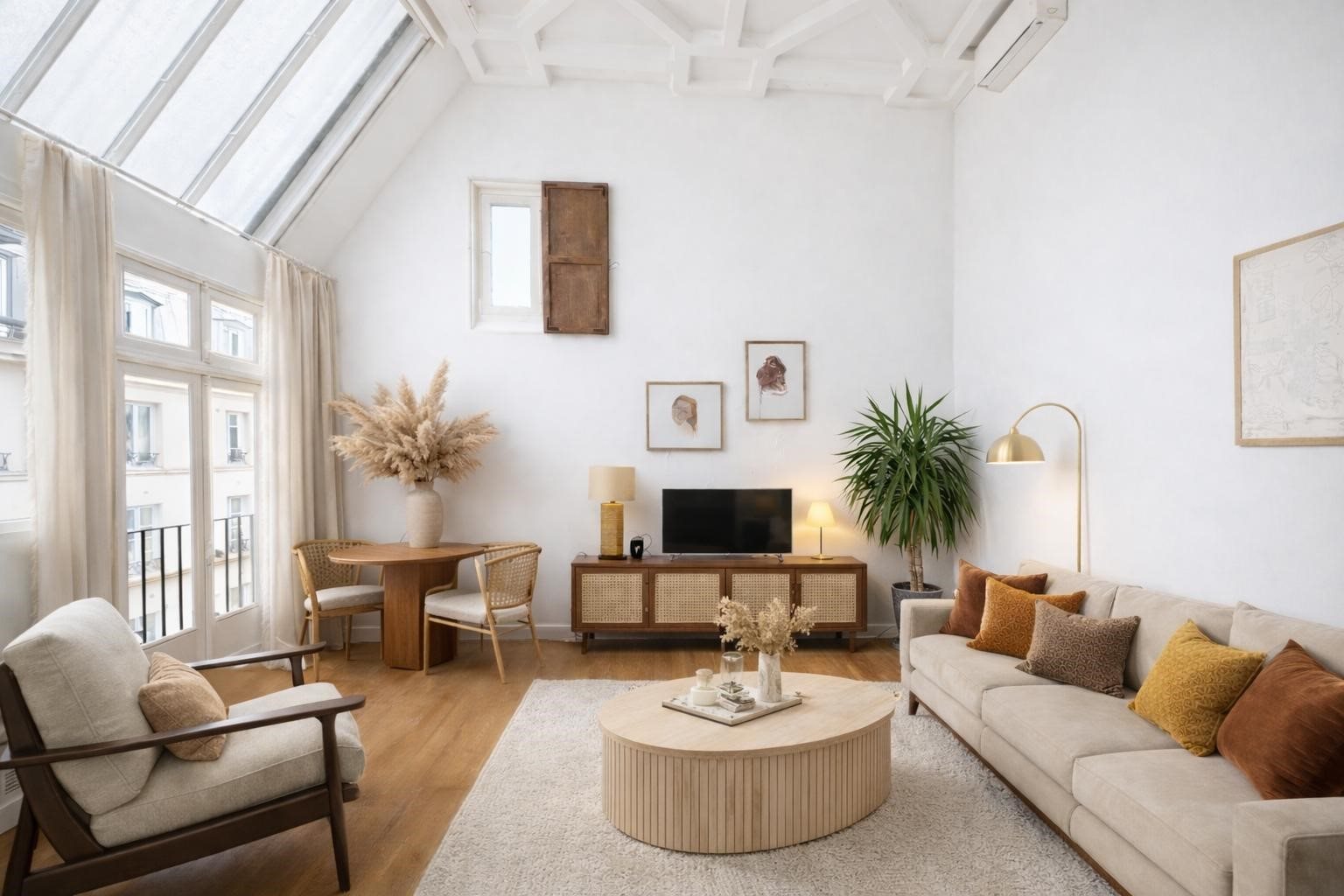 Paris 14e – limite 6e – Vavin – Atelier d’artiste familial À la lisière du 6e arrondissement, dans un immeuble signé Louis Taberlet et construit avec des matériaux issus de l’Exposition Universelle de 1889, cet appartement familial de 156,10 m² Carrez occupe le 4e étage avec ascenseur. Ce bien rare associe charme de l’ancien, volumes d’atelier d’artiste et prestations contemporaines dans un cadre lumineux et paisible. Une chambre de service d'une surface de 8,40 m² carrez (10.67 m² au sol) et une cave complètent ce bien. L’espace de vie traversant Est-Ouest comprend : - Un séjour de 42m2 baigné de lumière naturelle - Une cuisine ouverte de 34 m² - Un atelier spectaculaire avec 5 mètres de hauteur sous plafond et verrière d’origine - Bureau : 8,4 m² - Une salle d’eau - Des toilettes invités Sur la mezzanine : - Un couchage surplombant l’atelier - Une salle de bain avec WC L’espace nuit comprend : - Chambre 1 : 14 m² - Chambre 2 : 16 m² - Chambre 3 : 14 m² - Chambre 4 : 11 m² Chauffage?: Individuel radiateur gaz Eau chaude : Chaudière gaz Climatisation Digicode & interphone Performances énergétiques DPE E : 292 kWh/m²/an GES E : 64 kg CO2/m²/an Date du Dpe :