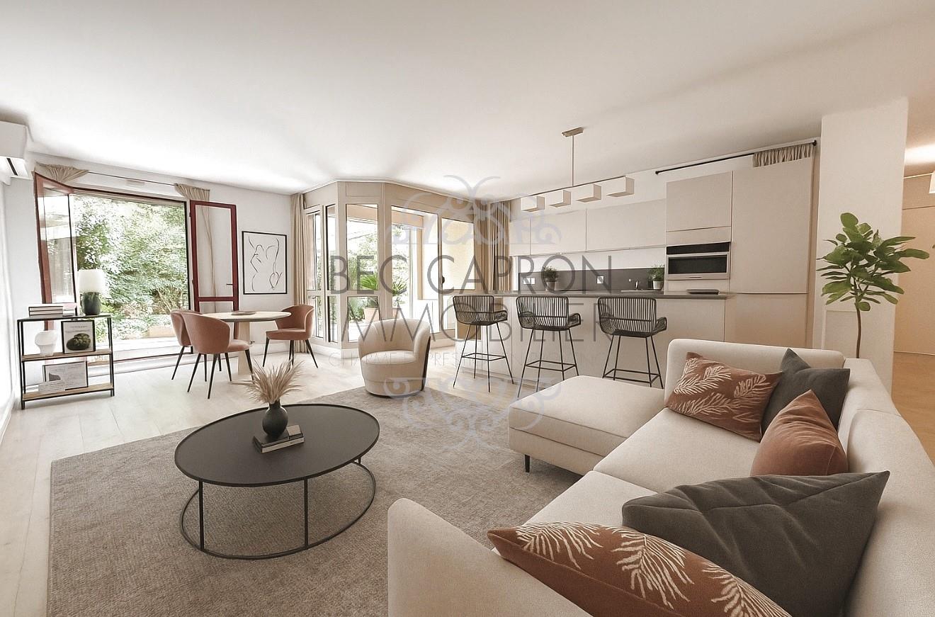 À seulement deux minutes à pied du centre historique d'Aix-en-Provence, niché au cœur d'une résidence intimiste et paisible, cet appartement traversant de type T3 incarne le parfait équilibre entre élégance contemporaine et confort de vie. Dès l'entrée, vous serez charmé par un vaste séjour lumineux de 36,91 m² exposé plein sud, prolongé par une cuisine ouverte entièrement équipée, idéale pour recevoir dans une ambiance chaleureuse et raffinée. L'espace nuit se compose de deux belles chambres de 11,76 m² et 11,58 m², offrant calme et sérénité, ainsi qu'une salle d'eau moderne avec douche à l'italienne et meuble vasque avec rangements. L'entrée spacieuse propose quant à elle de nombreux rangements intégrés. À l'extérieur, une terrasse accueillante d'environ 16 m², en partie couverte et équipée d'un store, ouvre sur un jardin privatif de 23 m² soigneusement arboré, véritable écrin de verdure en plein cœur de la ville. Climatisé et parfaitement entretenu, ce bien rare est complété par un box fermé en sous-sol et une cave. À deux pas des commerces, des Thermes et de l'animation du centre-ville, il offre une vie citadine tout en élégance et en tranquillité. Charges de copropriété : 110 € par mois. Taxe foncière : 1304 €. Un bien d'exception à découvrir sans tarder. Appartement soumis au statut de la copropriété, 60 lots, charges anuelles de copropriété: 1320 euros, pas de procédure en cours. Les informations sur les risques auxquels ce bien pourrait être exposé sont disponibles sur le site Géorisques : Cette annonce vous est proposée par Cerizo Nathalie - - N°Rsac: , Enregistré à de