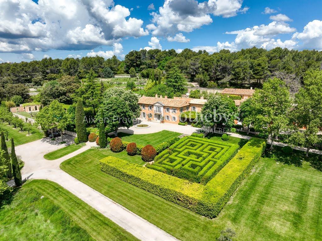 A quelques kilomètres d'Aix en Provence, ce domaine exceptionnel offre une vue imprenable sur la campagne aixoise. Avec les monts provençaux et la Sainte-Victoire en toile de fonds, le lieu, splendide, évoque un tableau de Cézanne, dans une sérénité absolue. S'étendant sur 25 hectares, la propriété comprend une prestigieuse bastide de 600 m², une maison d'invités, un bastidon indépendant de 239 m² et une maison de gardien. De la prestigieuse bastide aux jardins, chaque détail a été conçu pour offrir l'équilibre parfait entre le luxe moderne et l'élégante architecture, le charme des demeures provençales d'exception. Les matériaux, le savoir-faire des artisans et les finitions sont remarquables. Dominant l'oliveraie et les jardins à la française, la bastide comprend un hall, un vaste salon, une salle à manger, une belle cuisine équipée et six suites luxueuses. Une maison d'amis adjacente, de 74 m², comprend 2 chambres en suite pour les invités. Une salle de sport séparée, un espace pour un bureau ou un studio, et un grand garage fermé complètent l'ensemble. Pour savourer l'art de vivre provençal, le Jardin bleu, sublime au printemps, les terrasses, la piscine chauffée et le pool house avec en contrebas de la restanque, platanes, amandiers et cyprès.. Le court de tennis, le jardin secret et le potager, la cabane perchée, domaine des enfants pendant tout l'été.. Séparé de la bastide principale, le très beau bastidon comprend un séjour, une cuisine équipée et 4 chambres en suite. Dans un jardin paysagé, il dispose également d'une piscine et d'un pool house. Un lieu enchanteur, rare, sublimé par de talentueux amoureux de la Provence. Veuillez noter que le Domaine peut-être vendu sans la deuxième maison, sous réserve de négociation.