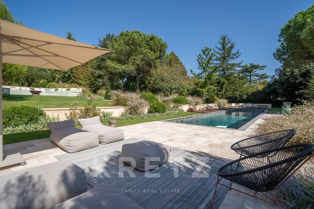 À 10 km de Bordeaux, au cœur d'un village de charme, cette propriété de prestige, rare sur le marché, offre l'équilibre parfait entre domaine confidentiel et localisation ultra-connectée : gare de Bordeaux à 10 min, aéroport à 15 min. Sur plus de 8 850 m², le parc paysager déroule de belles perspectives travaillées : pin parasol majestueux, clairières d'oliviers, patios, terrasses, potager et étang. La piscine chauffée au sel en pierre de Bali (22 × 4 m), prolongée par une vaste terrasse en travertin, dessine une ligne élégante dans un décor minéral et boisé, à l'allure de resort privé. La villa développe environ 580 m². L'entrée, pensée comme un atrium, révèle d'emblée une architecture de caractère : escalier sculptural, volumes lumineux, enfilades de réception. Double séjour traversant avec cheminée, salle à manger ouverte sur le parc (marbre et point de Hongrie), cuisine spectaculaire aux codes haute-couture (marbre Mont Blanc, laiton, table en orme, piano La Cornue), ambiance sonore multiroom intégrée. Dans la tour du pigeonnier : cave à vin sur mesure, climatisée. 7 chambres au total, dont au rez-de-chaussée une suite parentale d'environ 45 m² avec terrasse privative, + 3 chambres (dont 2 avec salles d'eau). À l'étage : 3 chambres et une salle de bains. Prestations premium : chauffage au sol, climatisation gainable réversible, pompe à chaleur, menuiseries italiennes, panneaux solaires, arrosage automatique. En retrait, une dépendance d'environ 65 m² avec double garage et bureau indépendant. Dossier détaillé sur demande & Visites sur qualification.