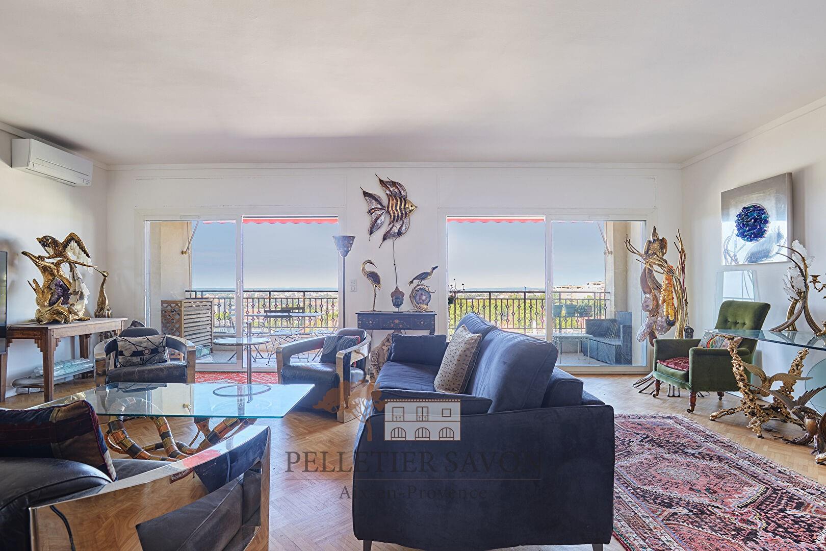 Situé au sein d'une résidence sécurisée et parfaitement entretenue cet appartement de 150m2 (131 m² Carrez) aux volumes généreux vous séduira par son élégance, sa luminosité et son cadre de vie exceptionnel. Situé en étage élevé et desservi par un ascenseur, ce bien rare bénéficie d'une vue panoramique imprenable sur la ville. Sa triple exposition inonde les pièces de lumière naturelle, créant une atmosphère chaleureuse et accueillante en toutes saisons. Entièrement rénové avec des matériaux de qualité, l'appartement conjugue modernité et confort avec une vaste pièce de vie d'environ 40m2, prolongée de sa terrasse plein ouest. La cuisine indépendante, entièrement équipée et meublée est complétée d'une loggia et s'intègre harmonieusement à l'ensemble. L'espace nuit se compose de trois chambres dont une belle suite parentale, assurant intimité et confort à chacun. Une salle d'eau contemporaine, deux toilettes séparés et de nombreux rangements viennent compléter ce bien pensé dans les moindres détails. La climatisation assure un confort optimal tout au long de l'année. Une cave privative en sous-sol vient parfaire les prestations de cet appartement, qui allie charme, fonctionnalité et qualité de vie. Un lieu de vie idéal pour ceux qui recherchent à la fois le calme, la proximité des commodités (écoles, commerces, etc) et une vue d'exception. Stationnement libre résidence, cave privative. A visiter absolument. Copropriété de 280 lots (Pas de procédure en cours). Charges annuelles : 4326 euros.