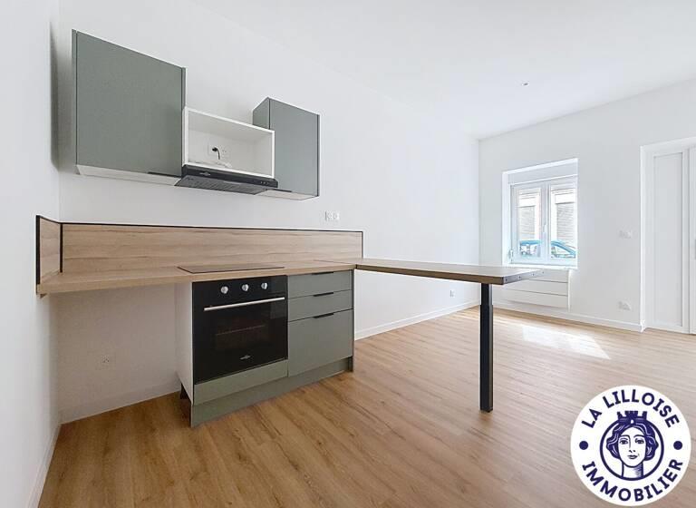 Lille Wazemmes !La Lilloise Immobilier vous propose de venir découvrir ce charmant type 2 bis, il dispose d'un beau salon séjour lumineux avec son coin cuisine, d'une chambre , d'une salle de bain avec douche vasque et WCet d'une seconde chambre avec son coin dressing. L'appartement a fait l'objet d'une rénovation intégrale.Ideal pour une petite colocation !Petite copropriété de 4 lots à 2 pas du métro Montebello.Retrouvez l'ensemble de nos biens sur le site: (3.33 % honoraires Ttc à la charge de l'acquéreur.)Copropriété de 4 lots - dont 4 lots habitation. (Pas de procédure en cours).Charges annuelles : 600euros. Référence : Ag1080-Av1882 Prix affiché : 155 000 € Ttc Barême des honoraires : N.C.
