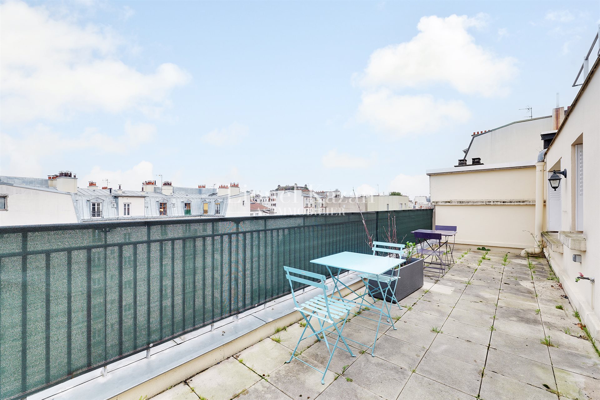 Villa Virginie une impasse au calme absolu, dans un immeuble récent au 7ème étage et dernier avec ascenseur un bel appartement de 44,92m2 loi Carrez en excellent état, isolé et fentêtres double vitrage, avec une terrasse de 22,25m2 (pondérée au 1/3 dans la surface annoncée) offrant une belle vue dégagée arborée et sur les toits de Paris se composant d'une entrée avec un placard, un beau séjour avec une cuisine équipée ouverte donnant sur la terrasse, une chambre avec placards, une salle de bains avec un wc, un dégagement avec un placard, un dressing. Chauffage et eau chaude inclus dans les charges Rare, Coup de coeur assuré Ideal Pied A Terre