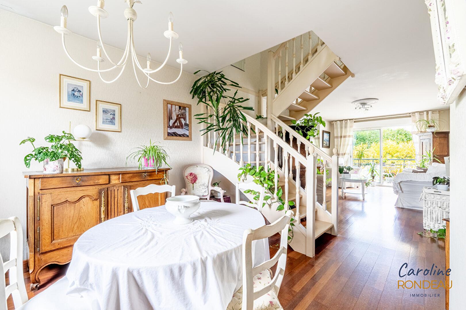 Caroline Rondeau immobilier vous présente en nouveauté, a vendre Nantes Erdre Eraudière appartement T4 de 3 chambres en Duplex, au 3ème et dernier étage avec ascenseur. Sur la résidence "les terrasses de l'Erdre 2", cet appartement cossu et familiale vous séduira par sa situation au pied de l'Erdre, en impasse et au calme. Il s'organise comme une petite maison sur le toit, sur le 1er niveau, un hall d'entrée desservant un beau séjour traversant salon avec accès a terrasse a l'ouest, salle a manger, cuisine séparée A/E a actualiser mais en très bon état, lingerie, une chambre avec salle d'eau, wc séparé, dressing. Sur le 2ème niveau en duplex, un palier (pour un espace bureau) 2 chambres en mansarde avec de grands rangements, une deuxième salle d'eau, wc. Le lot principal est complété d'un grand garage sécurisé, d'une cave avec électricité et un parking aérien. Local vélos commun. Chauffage électrique individuel, appartement soigné (quelques remises au gout du jour a prévoir) Résidence sécurisée, bien entretenue. Un bien en dernier étage, sur un environnement nature et a proximité de toutes les commodités bus commerces écoles. Pour plus d'information ou le visiter Caroline .